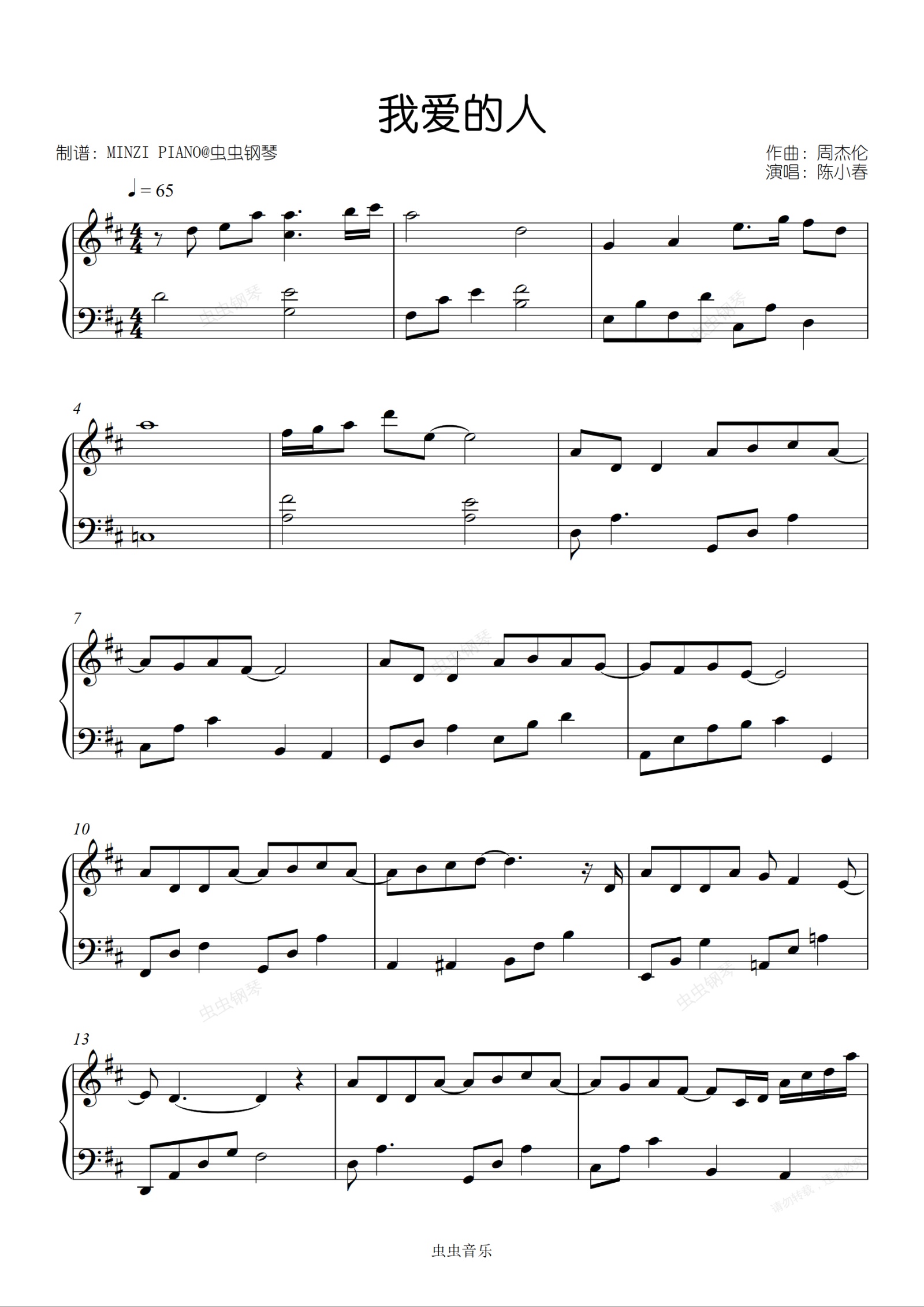 钢琴谱:我爱的人-陈小春 原调