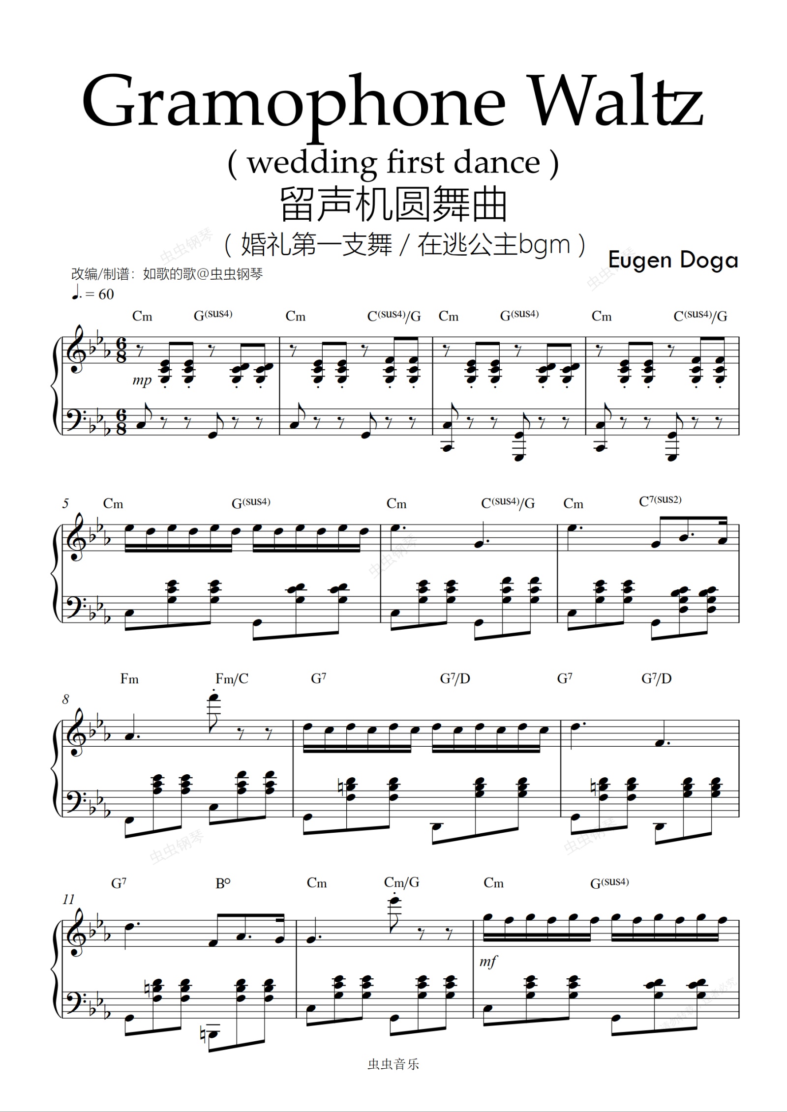 钢琴谱:Gramophone Waltz(wedding first dance)留声机圆舞曲/婚礼第一支舞/在逃公主bgm