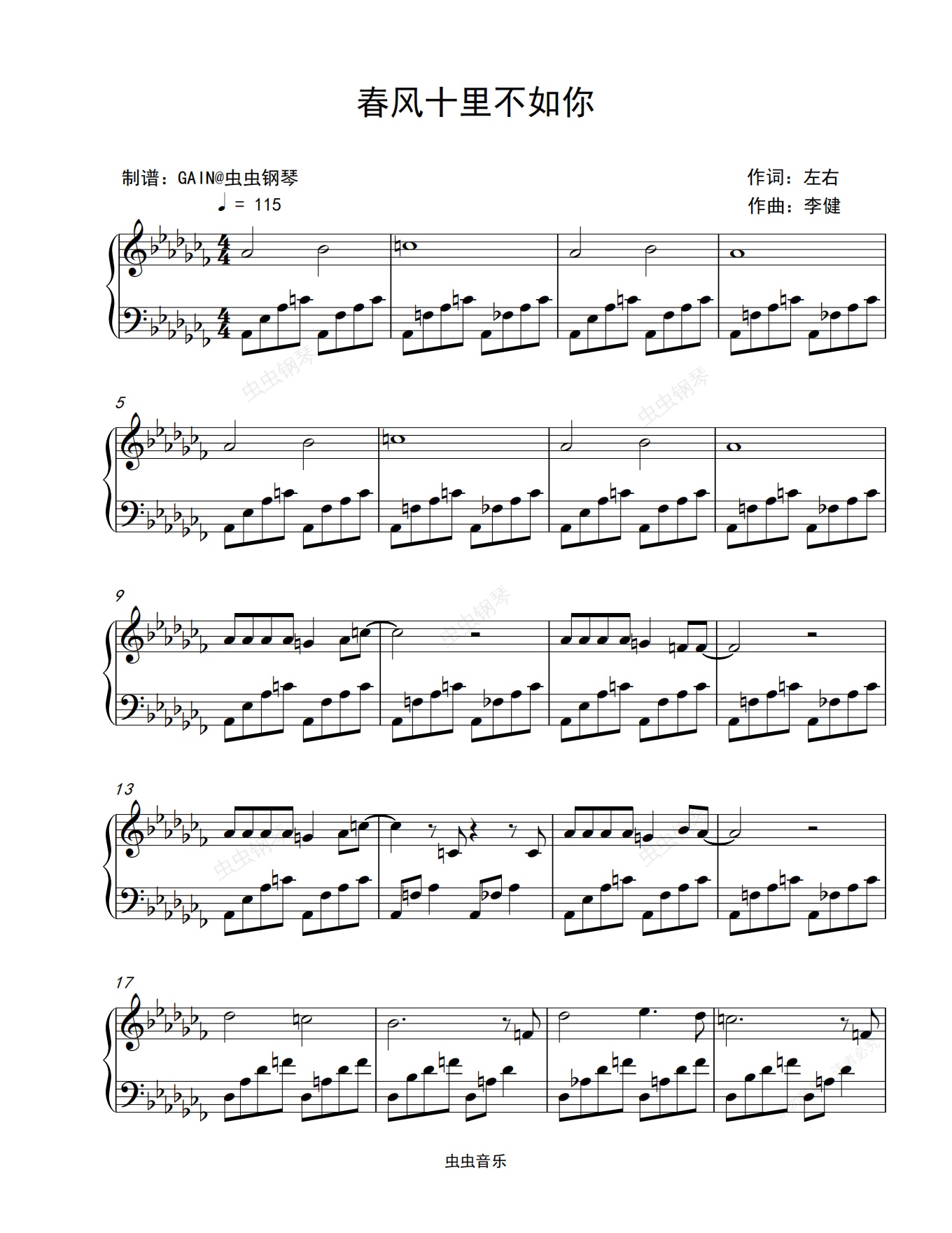 钢琴谱:春风十里不如你-李健-春风十里不如你主题曲