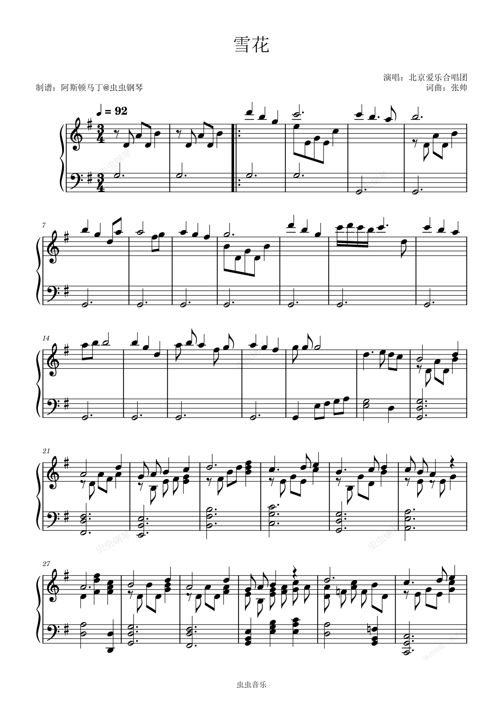 钢琴谱:雪花 (2022北京冬奥开幕主题曲) - 北京爱乐合唱团【独奏】