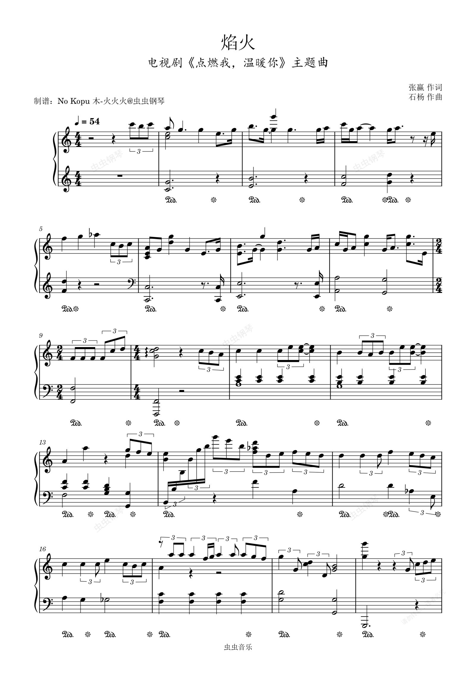 钢琴谱:周深《焰火》C调《点燃我,温暖你》主题曲