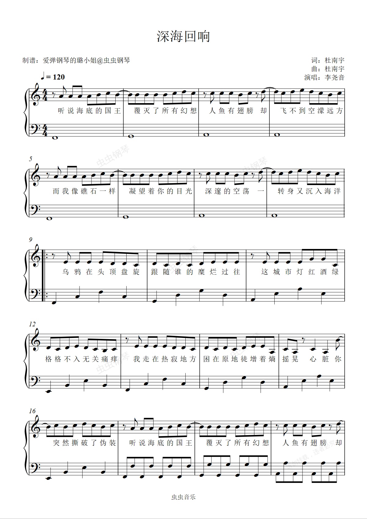 钢琴谱:深海回响 - C调简化版 - 附歌词