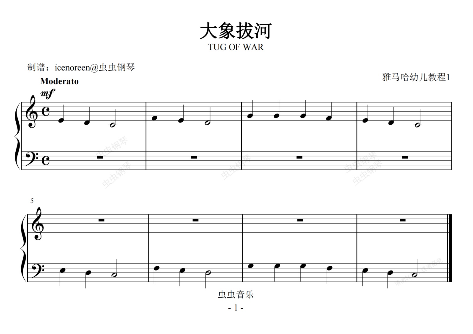 钢琴谱:大象拔河