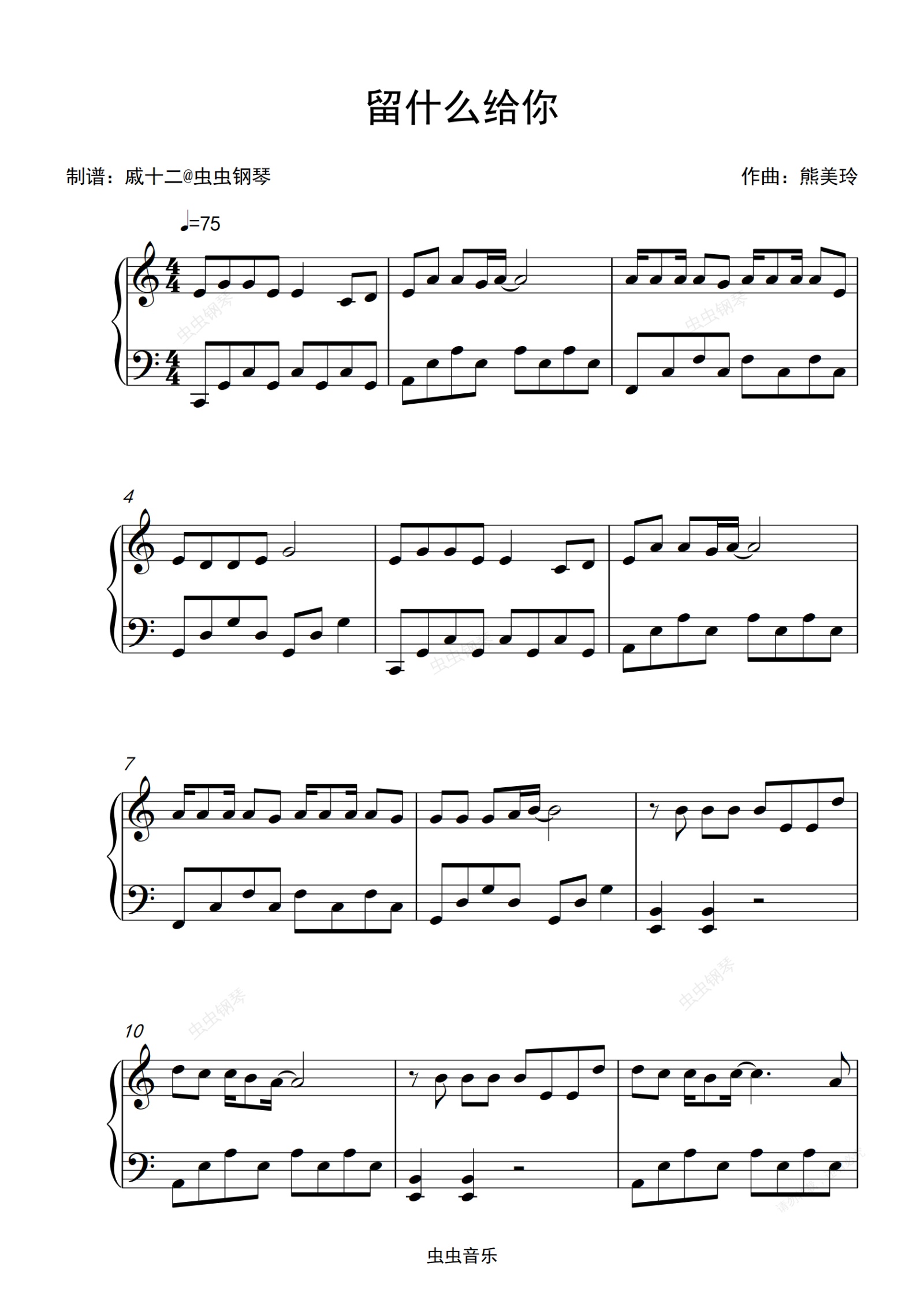 钢琴谱:留什么给你-C调简单版