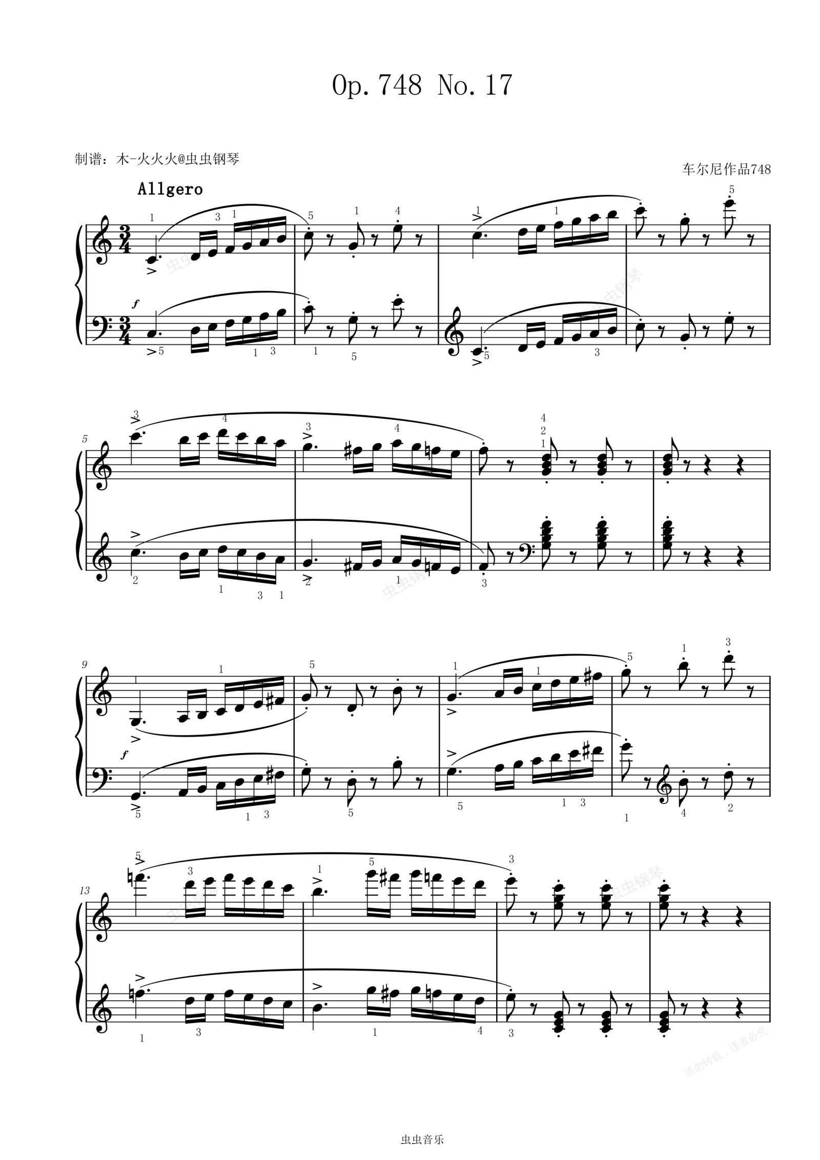 钢琴谱:车尔尼Op.748_No.17(带指法)