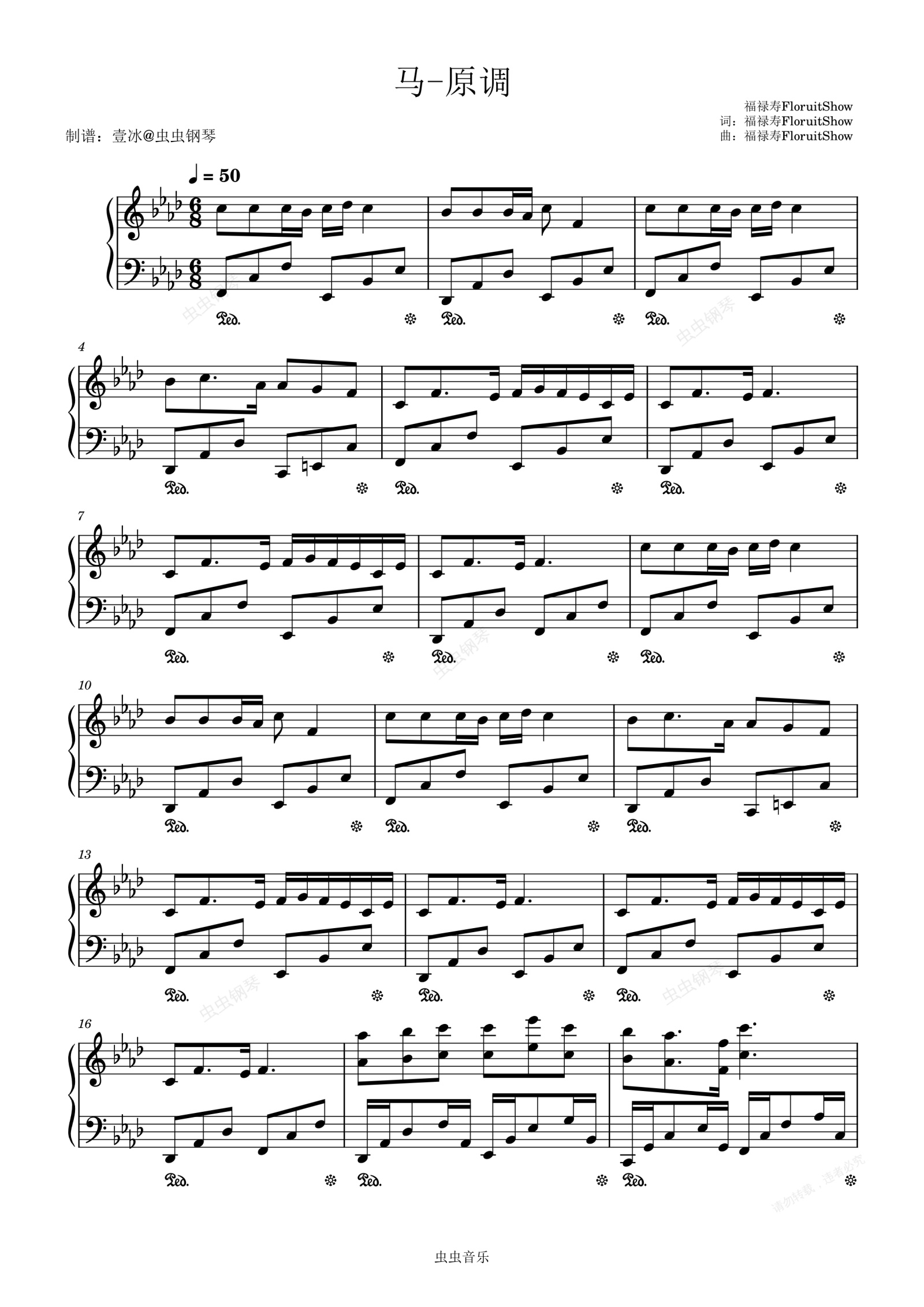 钢琴谱:马//福禄寿FloruitShow-降A调