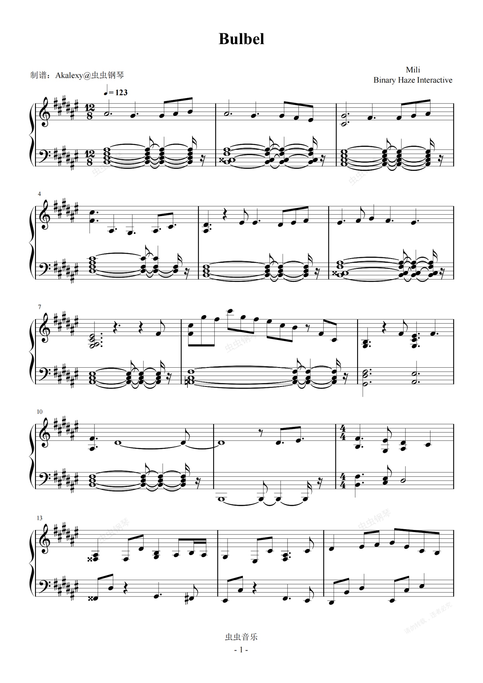钢琴谱:【终焉的莉莉丝】Bulbel