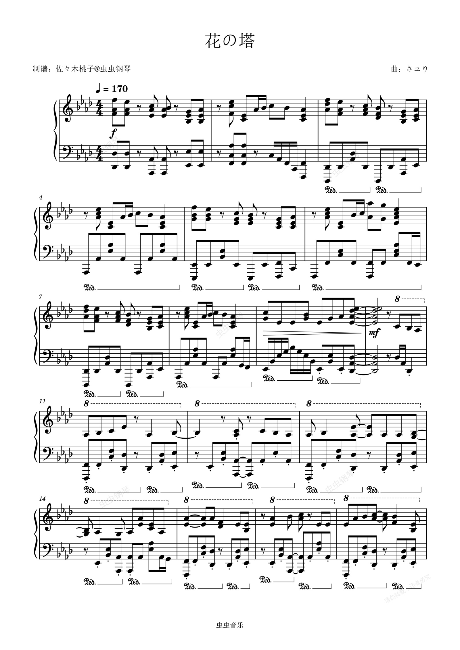 钢琴谱:《花の塔》(《莉可丽丝》ED)