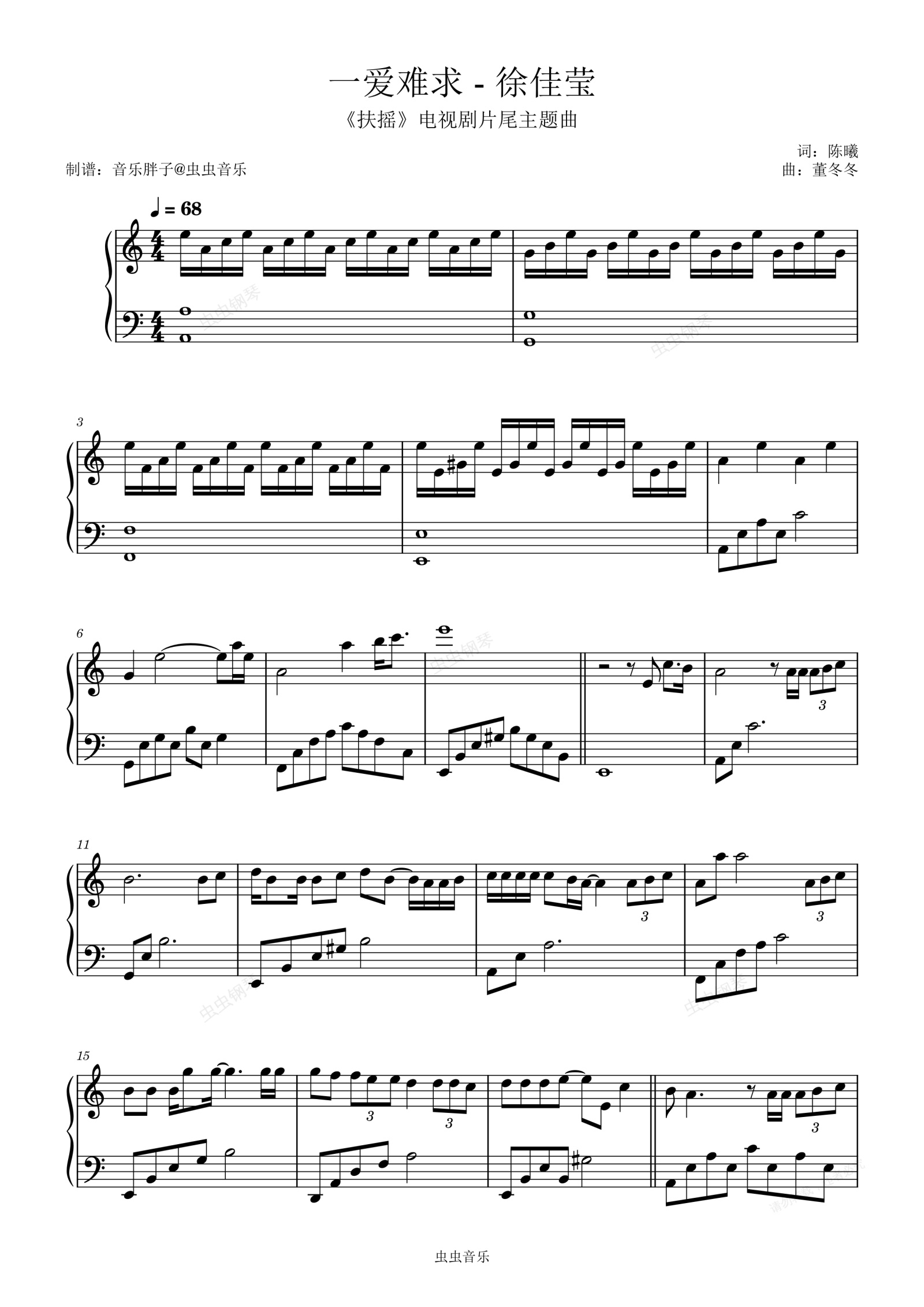 钢琴谱:一爱难求 (《扶摇》电视剧片尾主题曲) - 徐佳莹