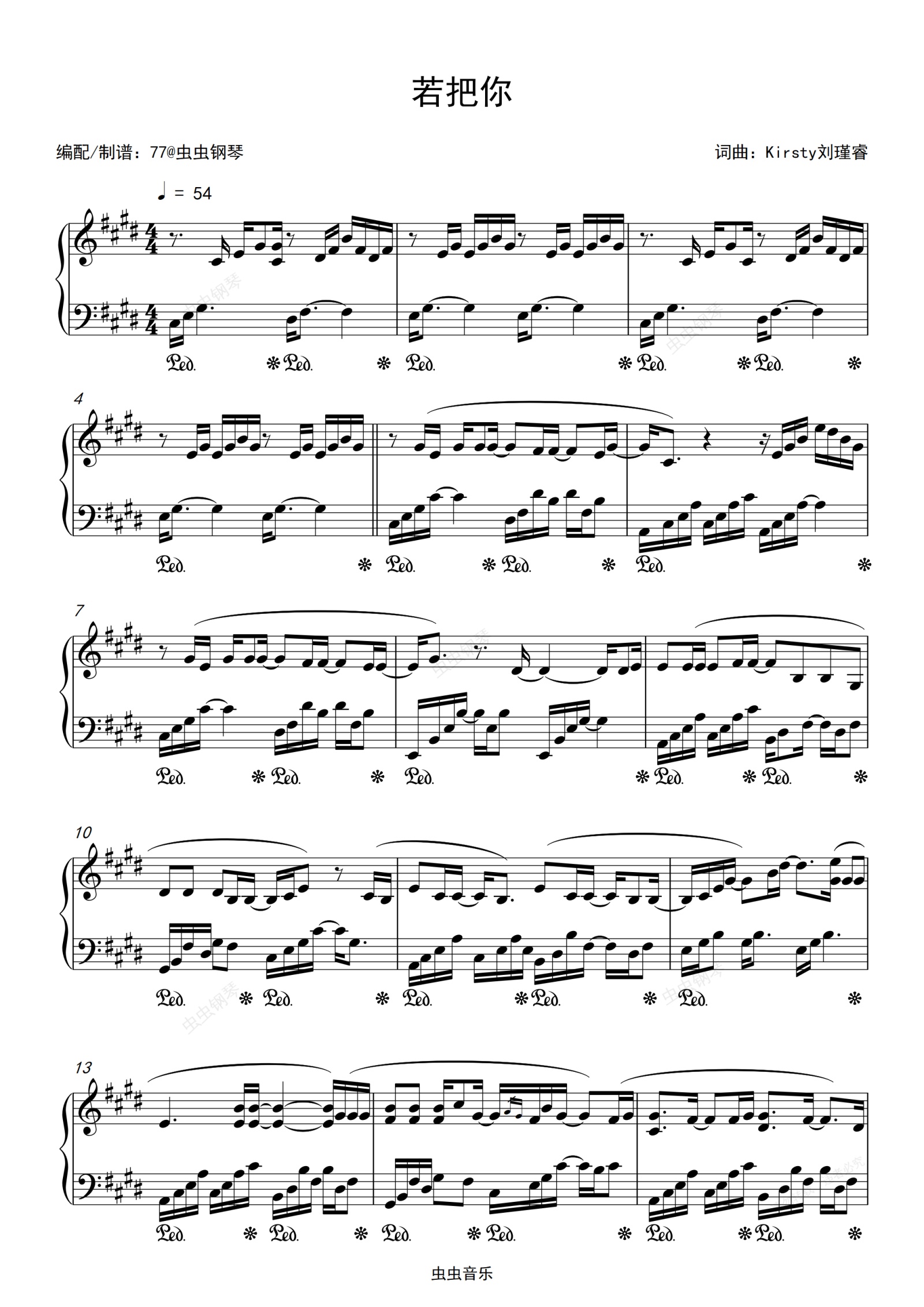 钢琴谱:Kirsty刘瑾睿 - 《若把你》高度还原 钢琴独奏