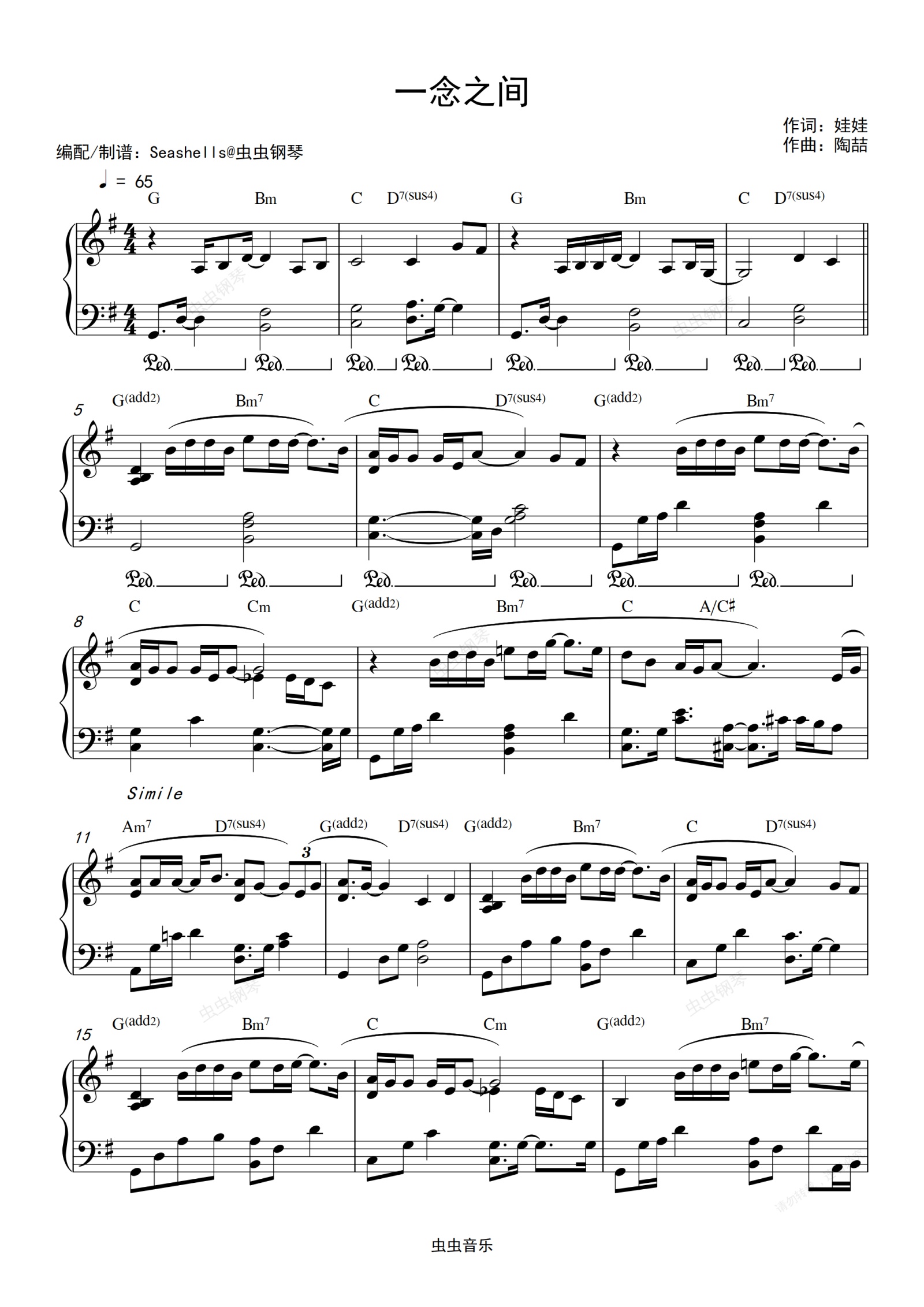 钢琴谱:陶喆-《一念之间》精编钢琴独奏