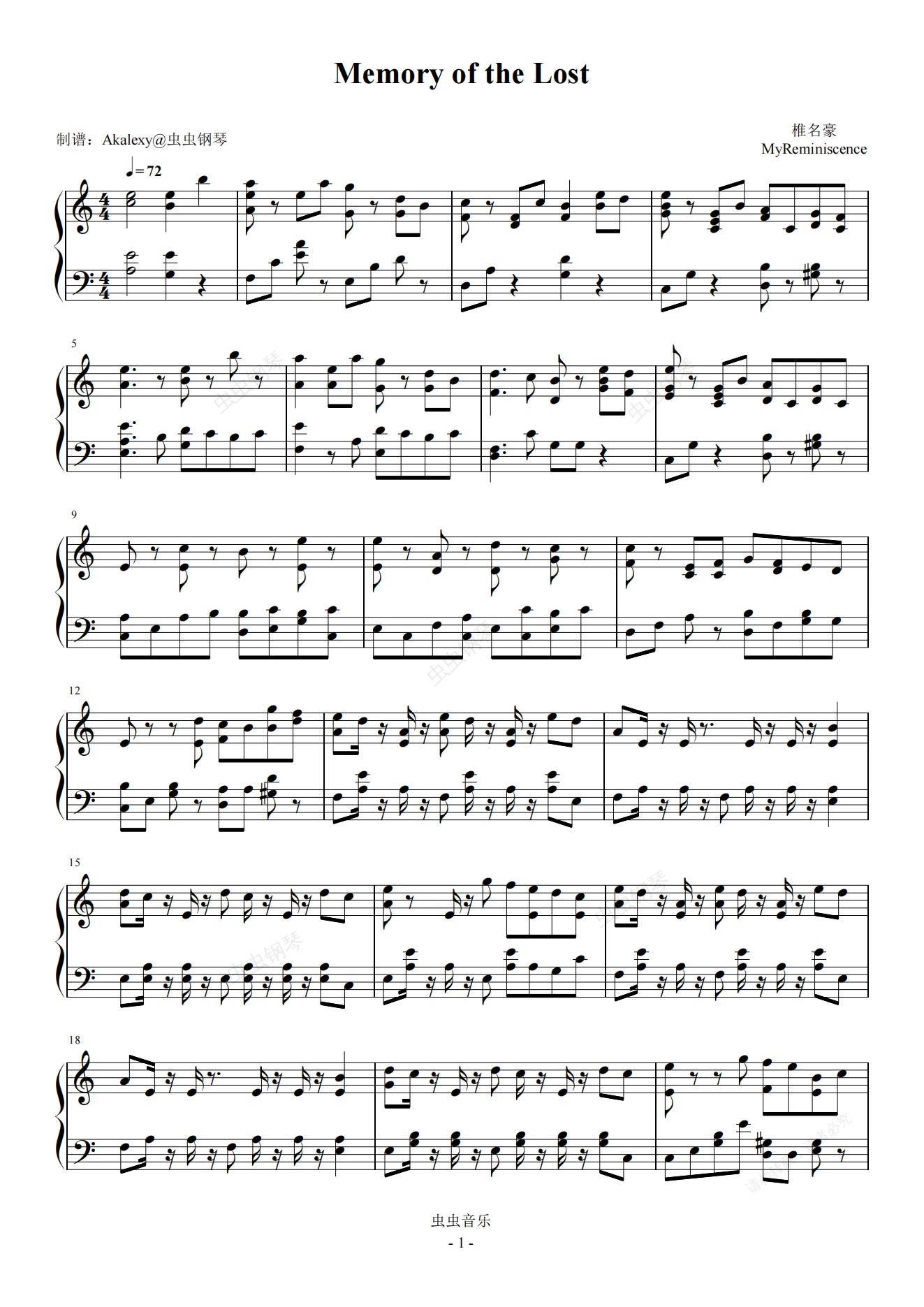 钢琴谱:【噬血代码】Memory of the Lost