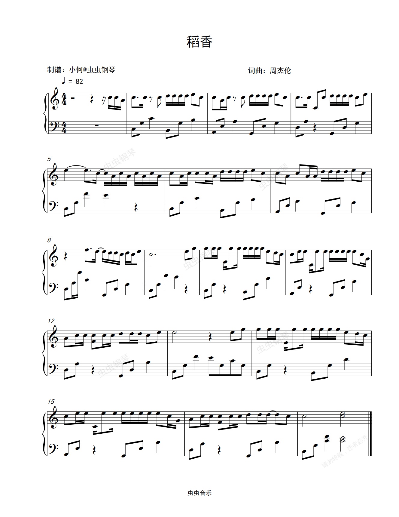钢琴谱:稻香-周杰伦-C调简单版