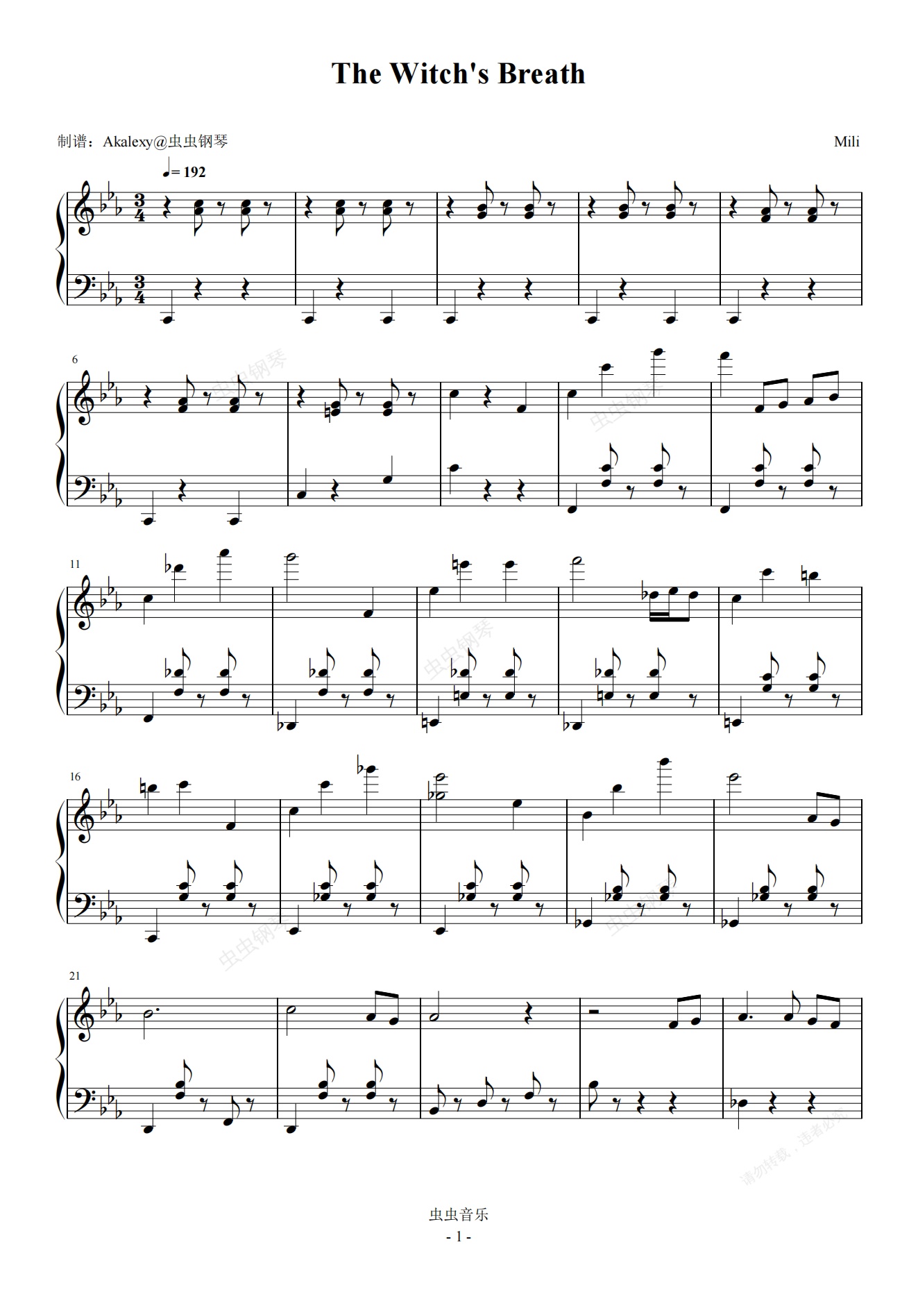 钢琴谱:【终焉的莉莉丝】The Witch's Breath
