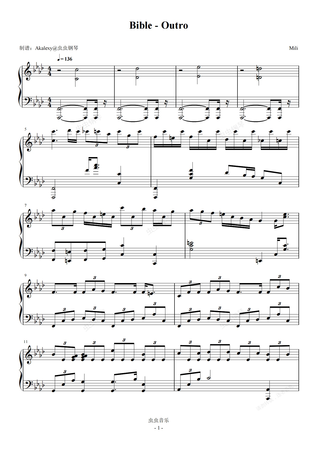 钢琴谱:【终焉的莉莉丝】Bible Outro