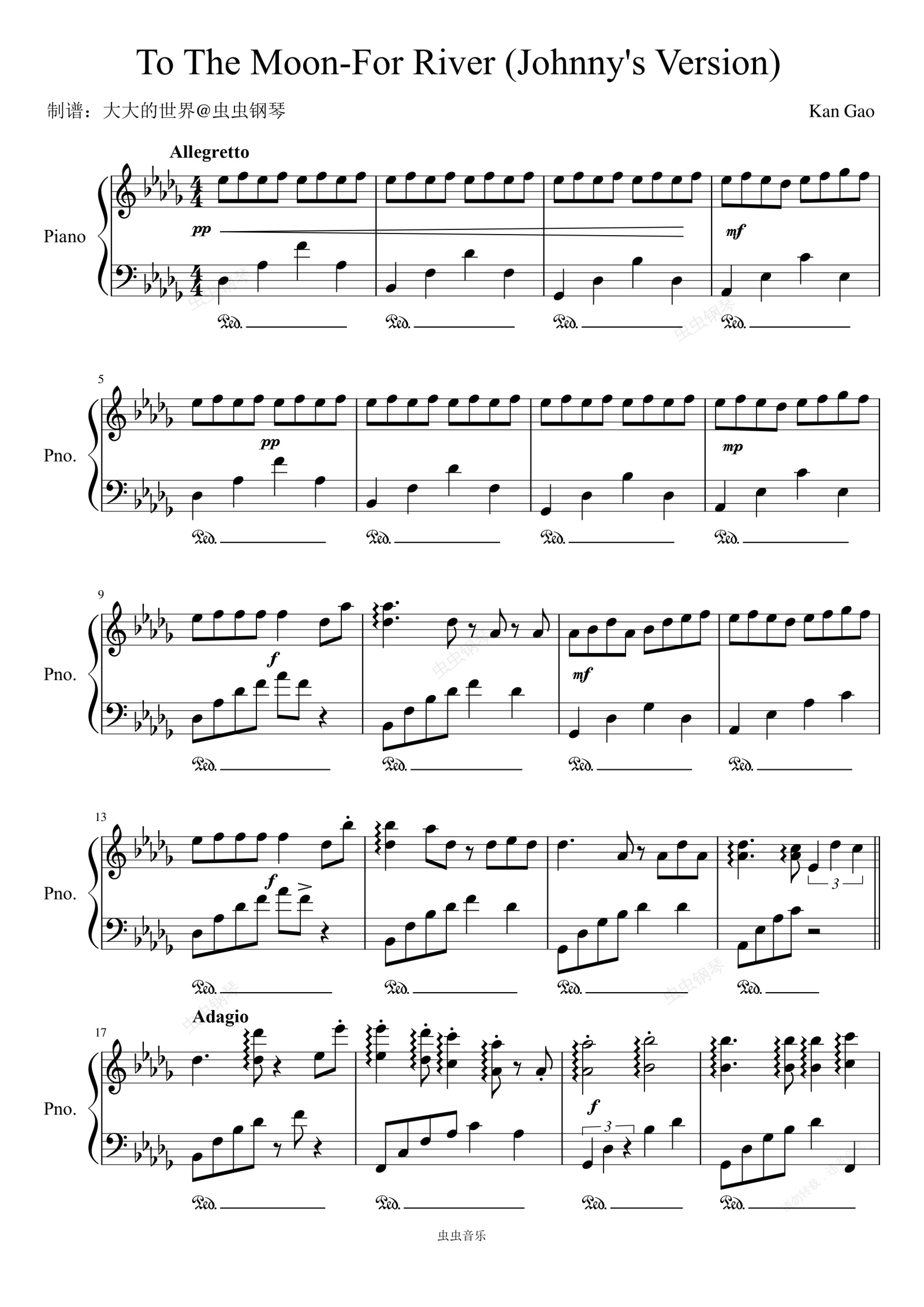 钢琴谱:To The Moon-For River (Johnny's Version)