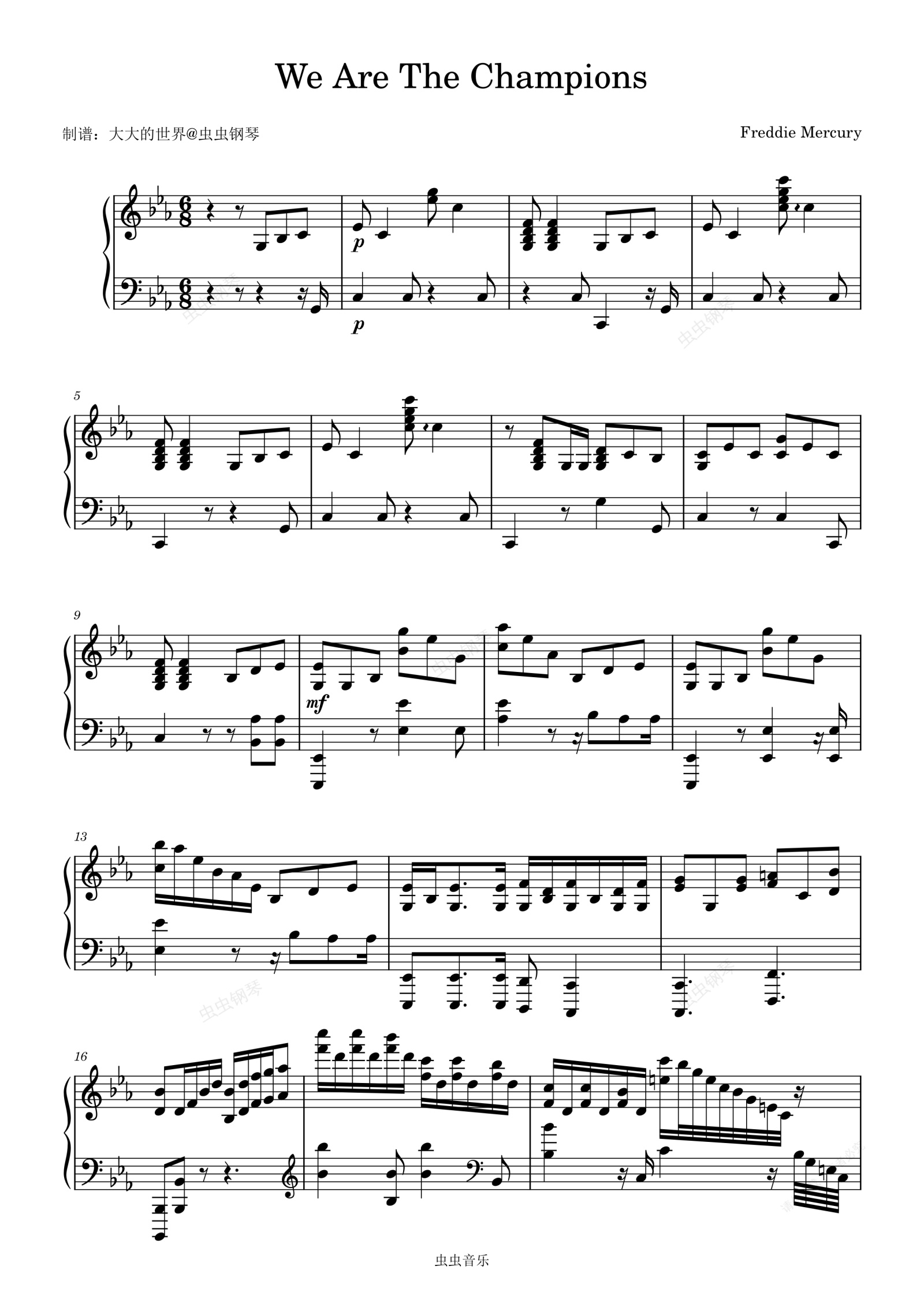 钢琴谱:We Are The Champions (デンセツノチャンピオン) (Remastered 2011) - Queen (皇后乐队)