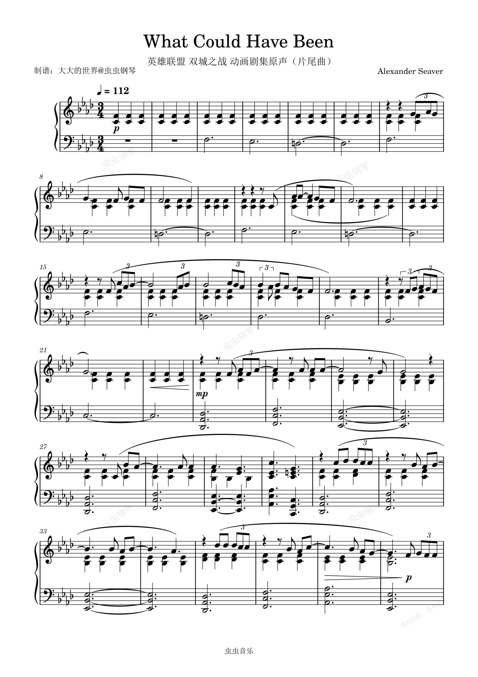 钢琴谱:《What Could Have Been》 - Sting (史汀)/Ray Chen (陈锐) - 英雄联盟 双城之战 动画剧集原声(片尾曲)