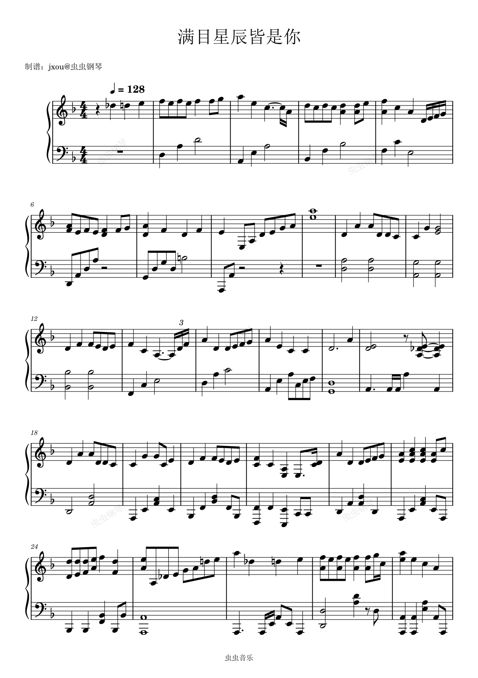 钢琴谱:满目星辰皆是你 完美还原版