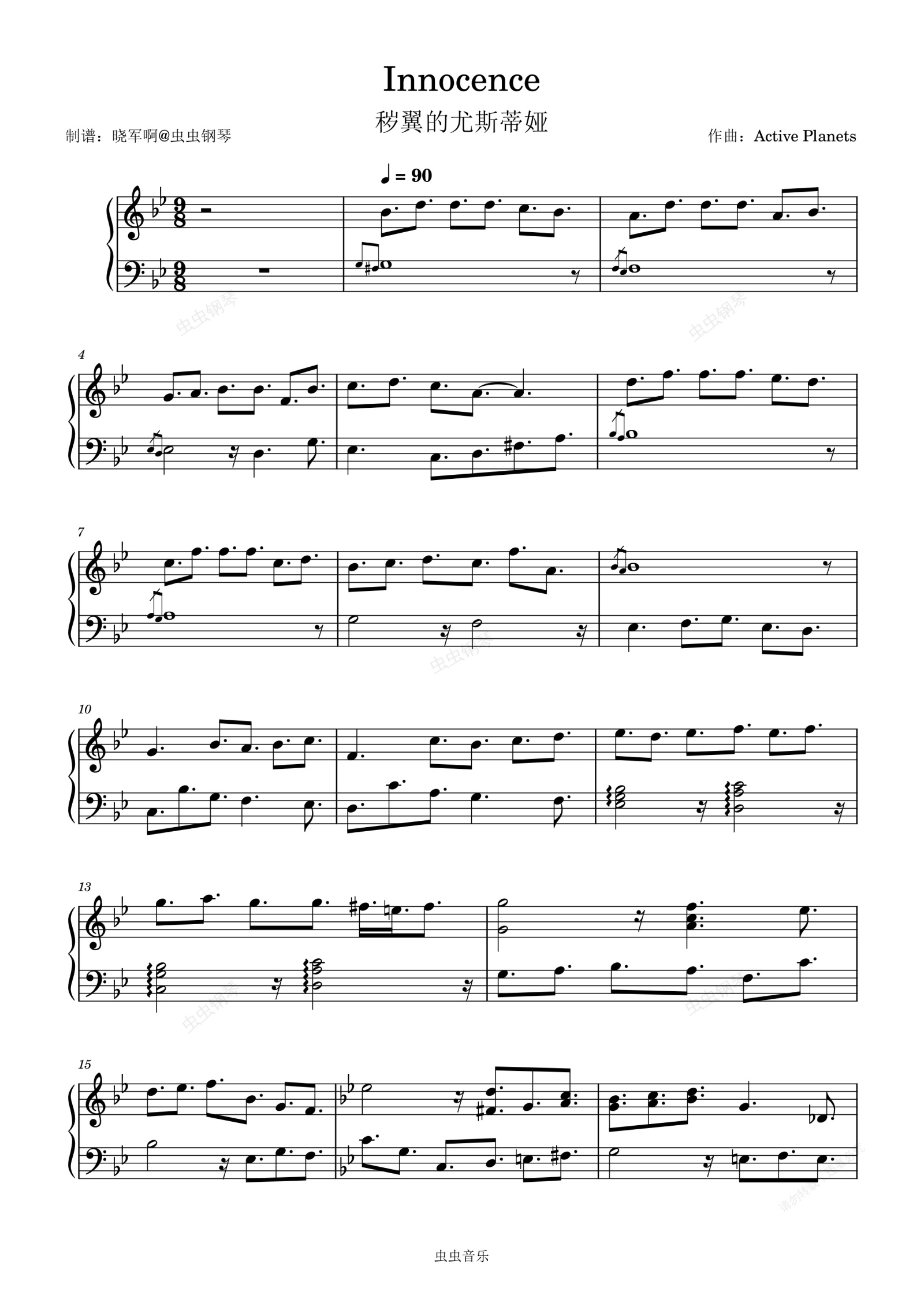 钢琴谱:【秽翼的尤斯蒂娅】Innocence