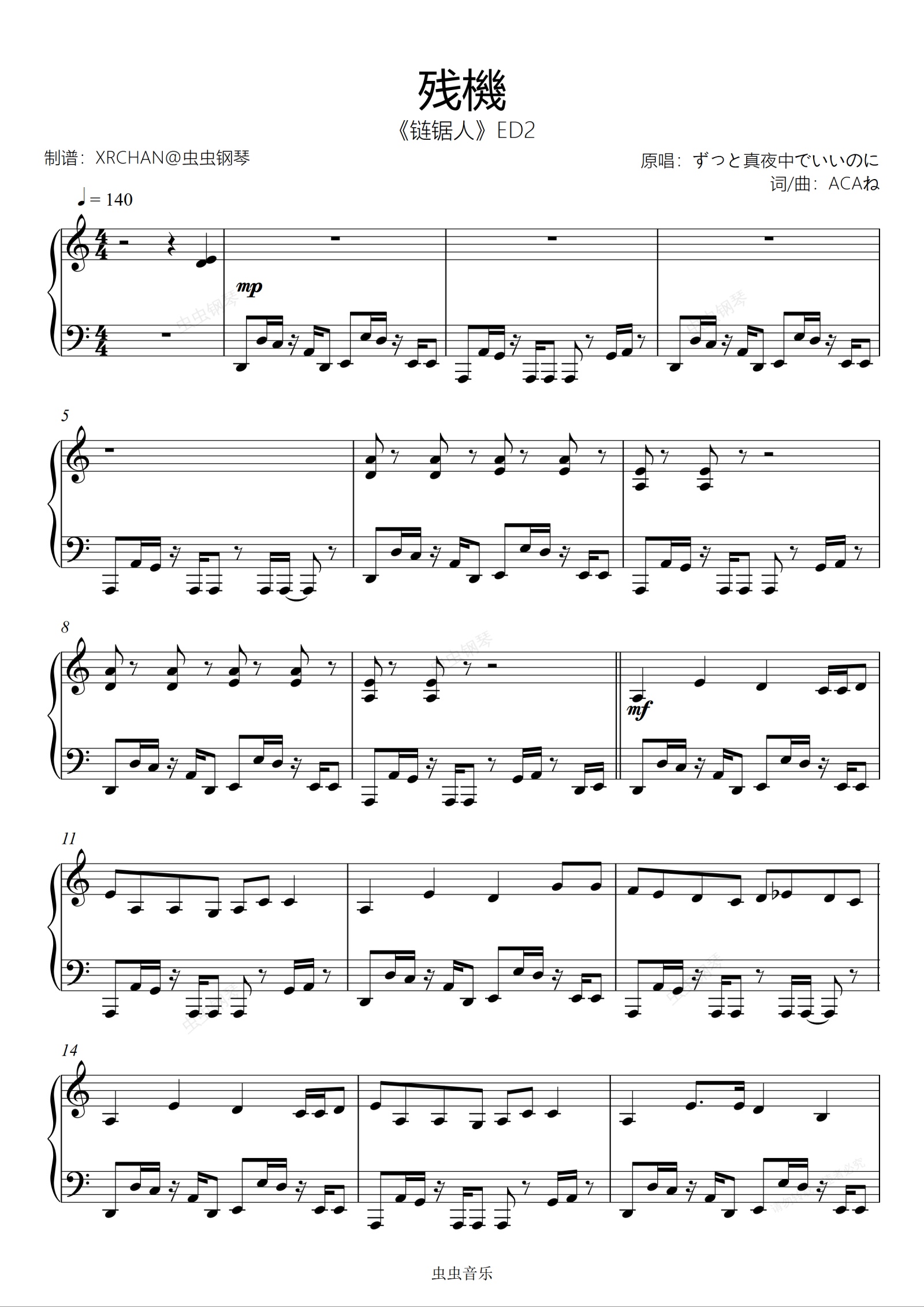 钢琴谱:链锯人(电锯人) ED2 残机 初级