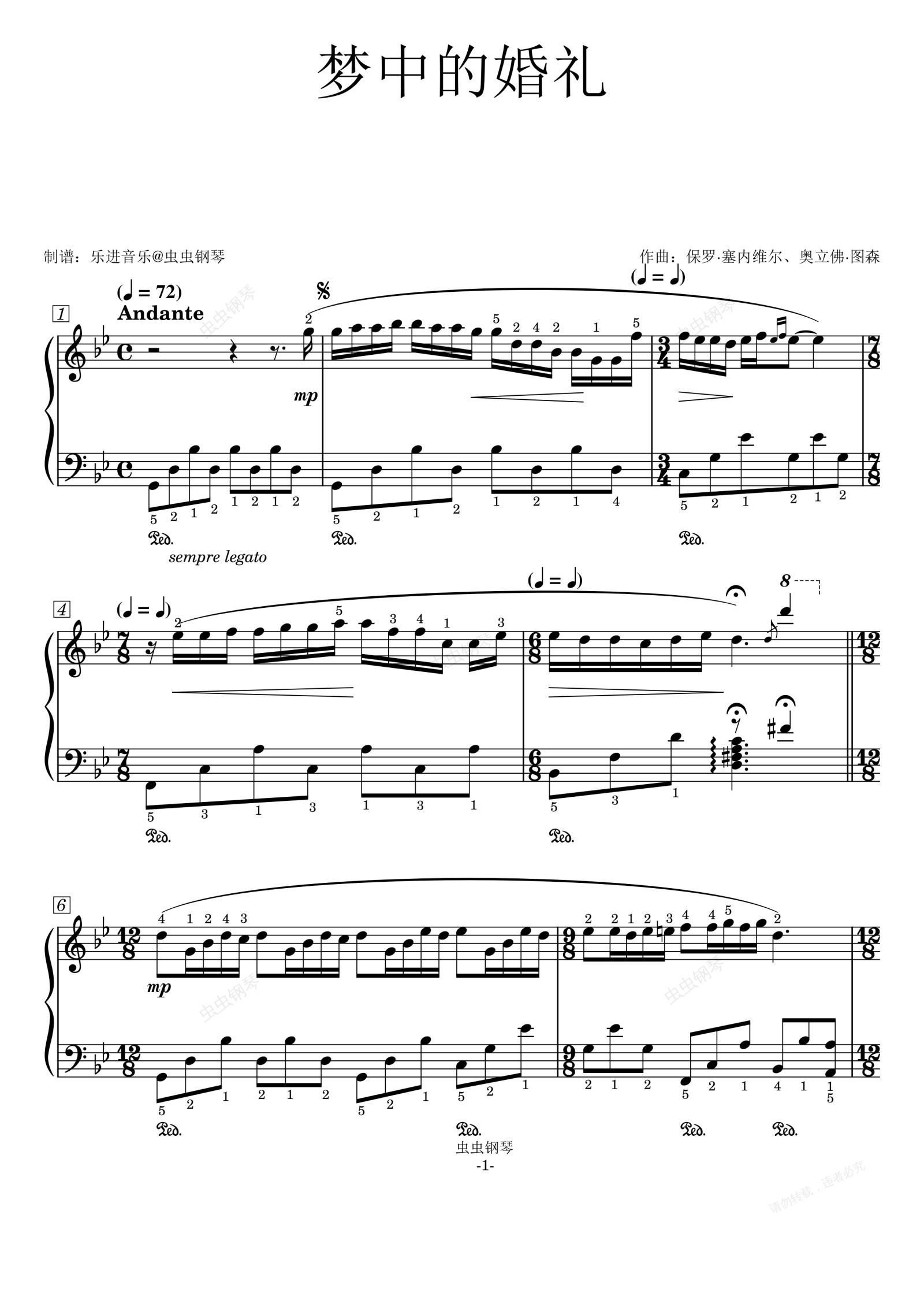 钢琴谱:30.《梦中的婚礼》原版(带指法)