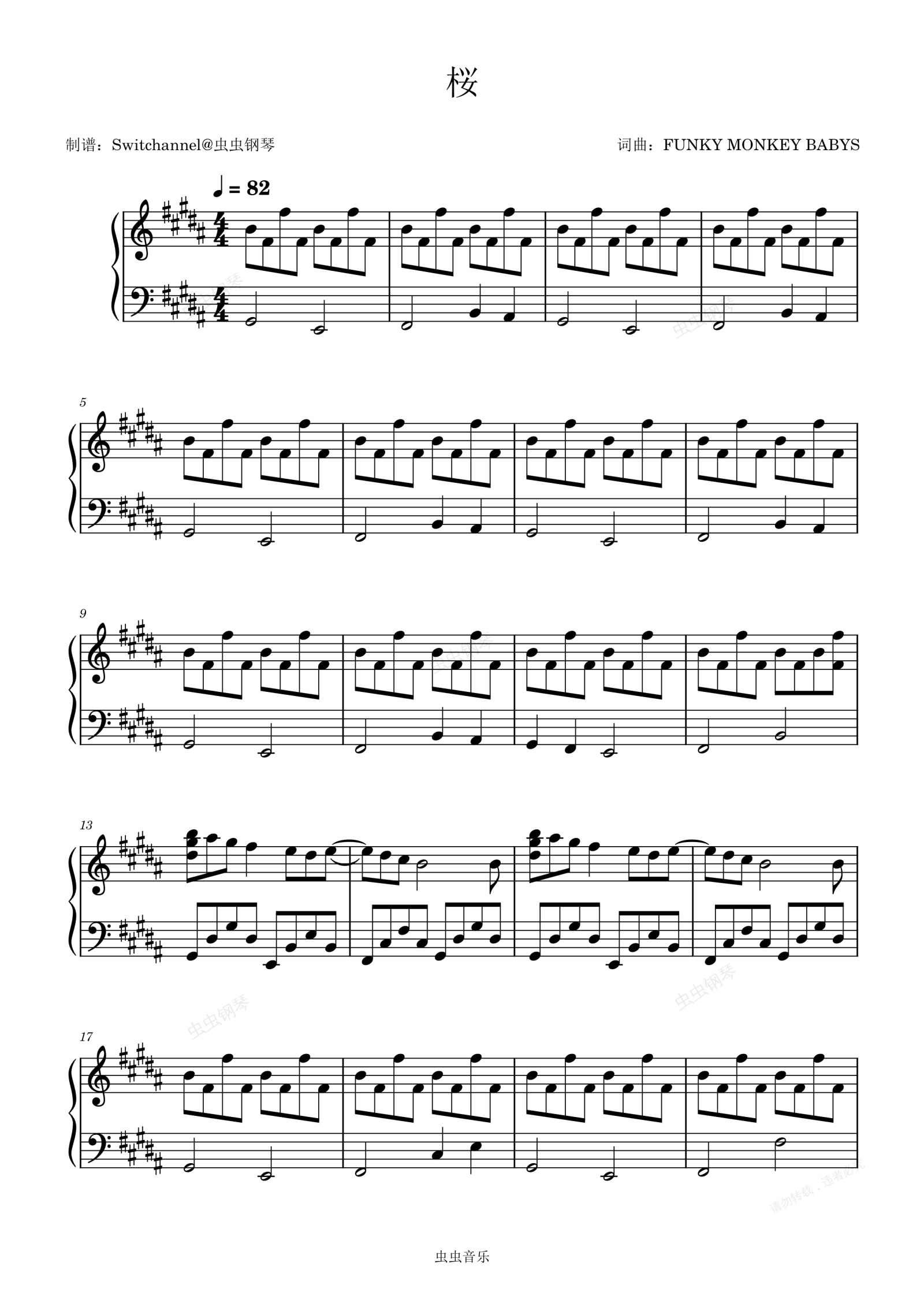 钢琴谱:桜-FUNKY MONKEY BABYS 钢琴弹唱谱(纯钢琴)