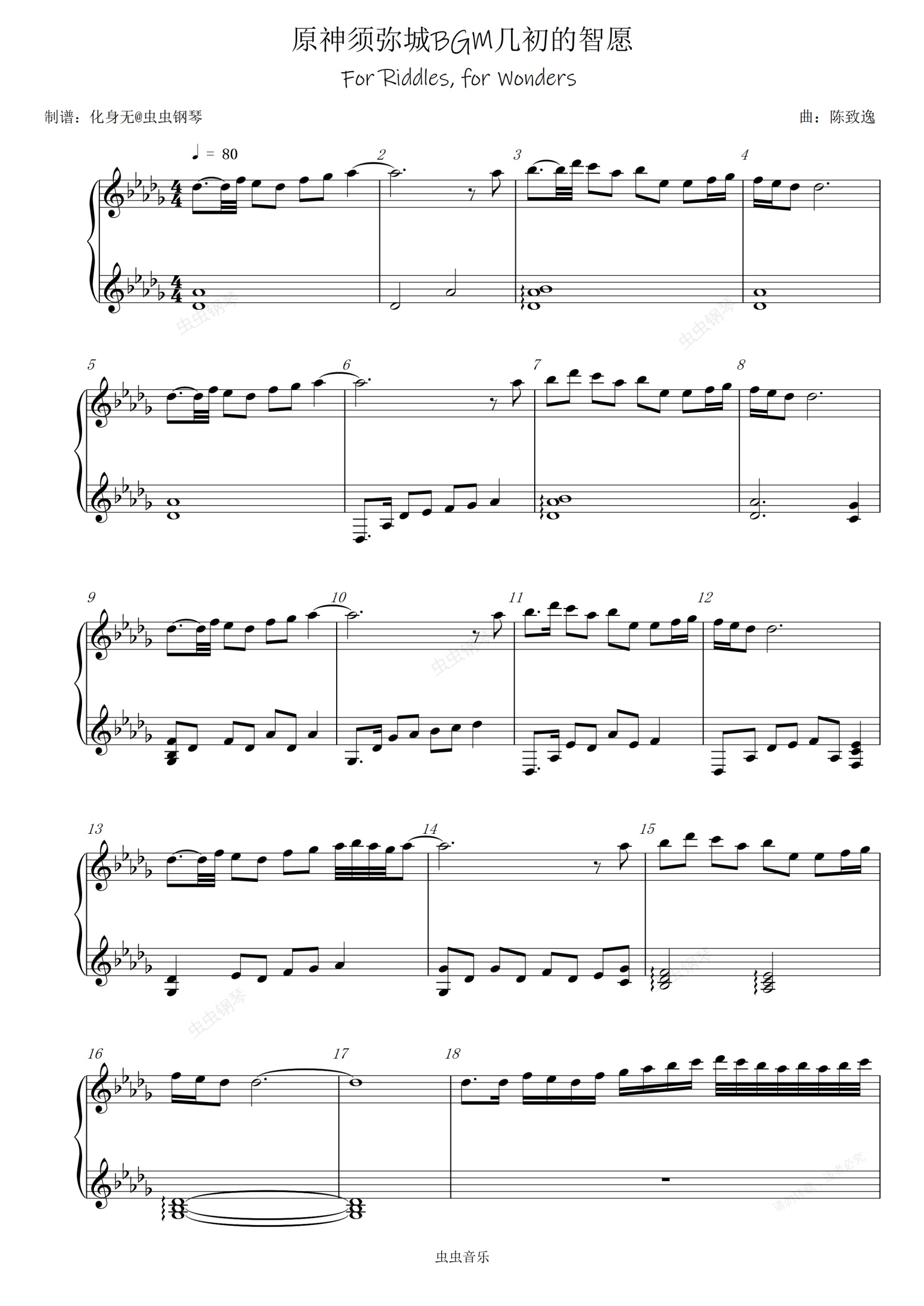 钢琴谱:原神须弥城BGM几初的智愿 For Riddles, for Wonders (让世界,彻底遗忘我)