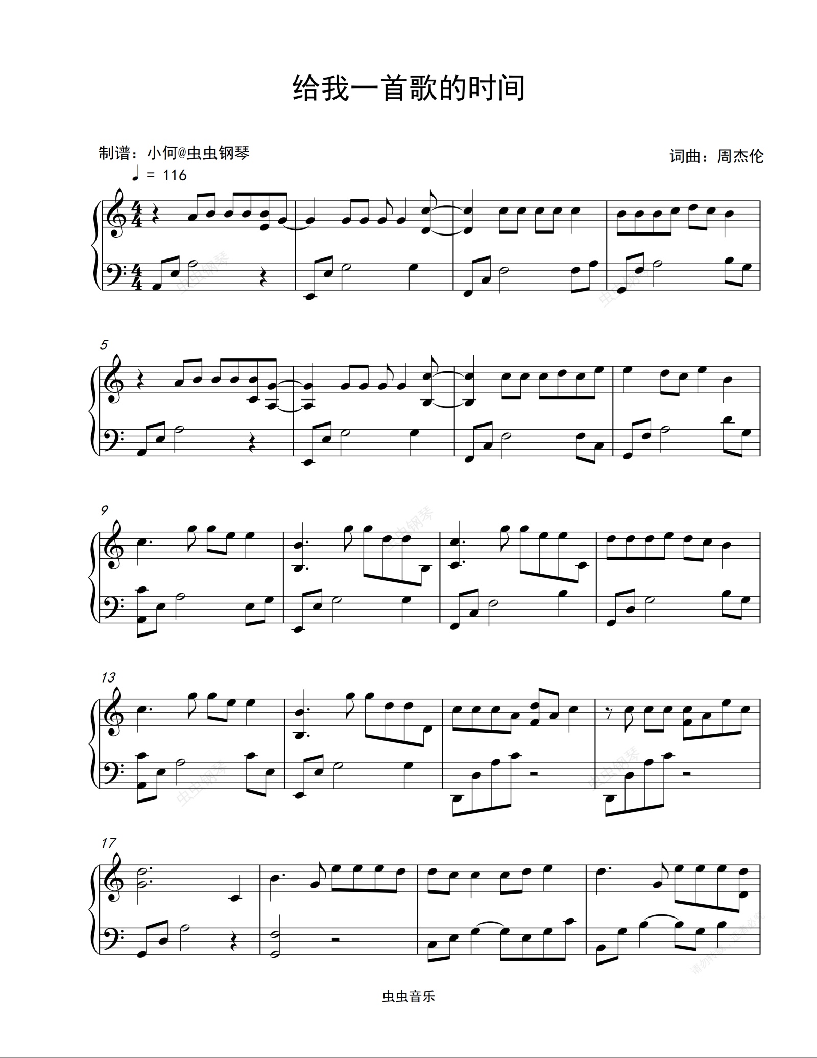 钢琴谱:给我一首歌的时间-周杰伦-C调简单版