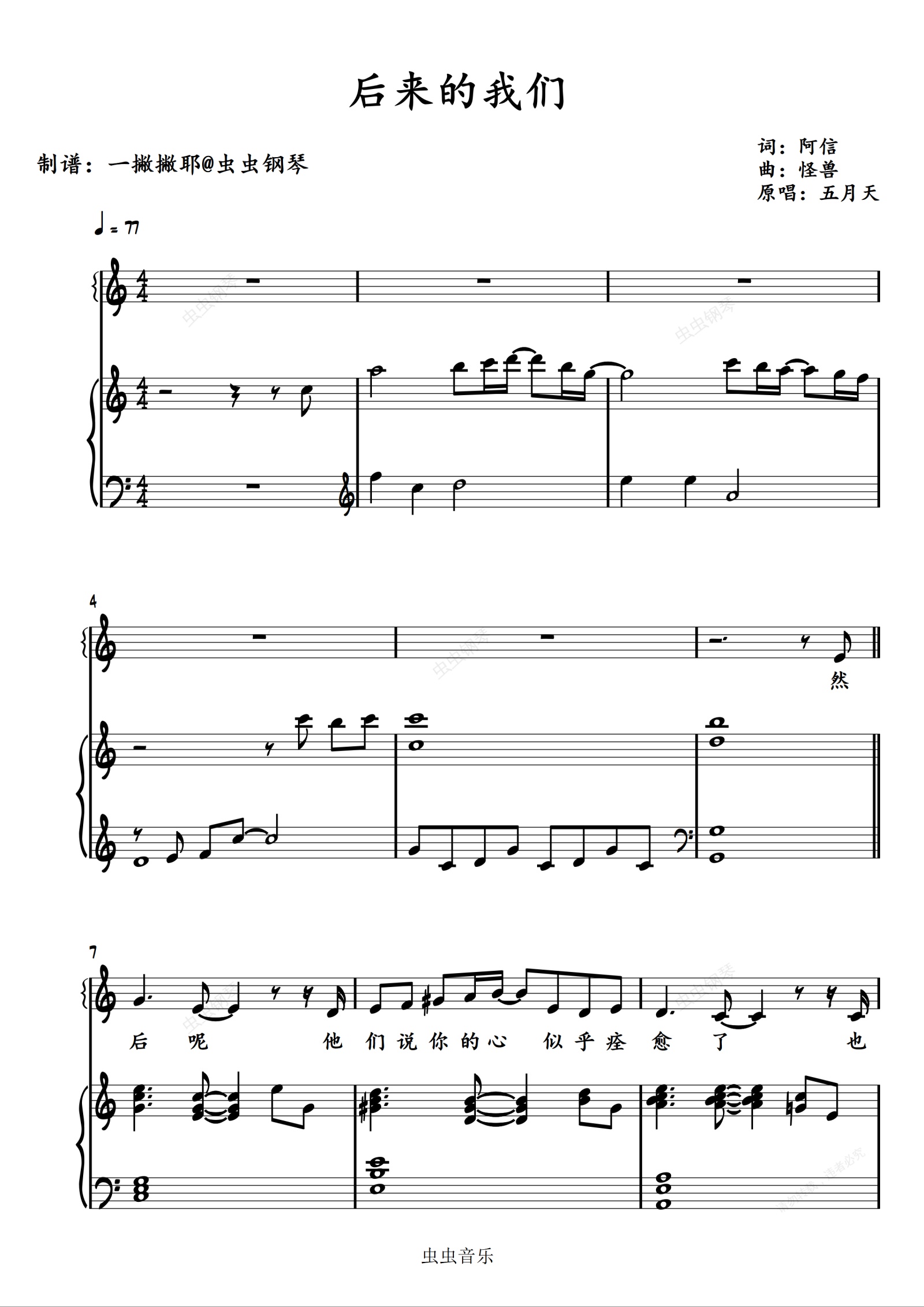 钢琴谱:极限还原弹唱谱《后来的我们》五月天「一撇撇耶」