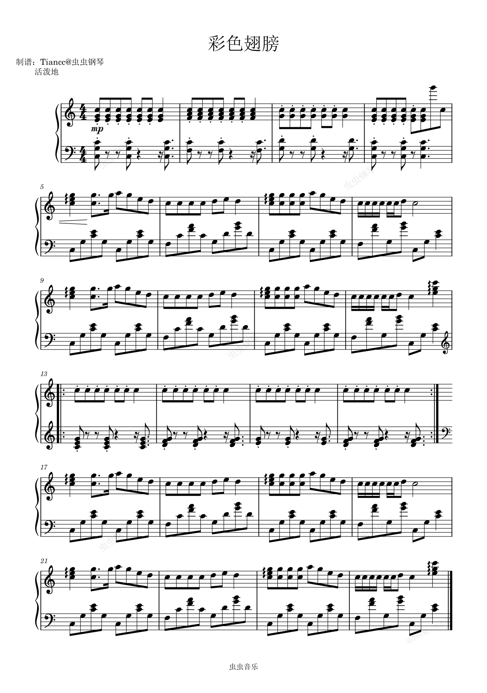 钢琴谱:《彩色翅膀》这曲子唱得可真甜,可爱就是正义