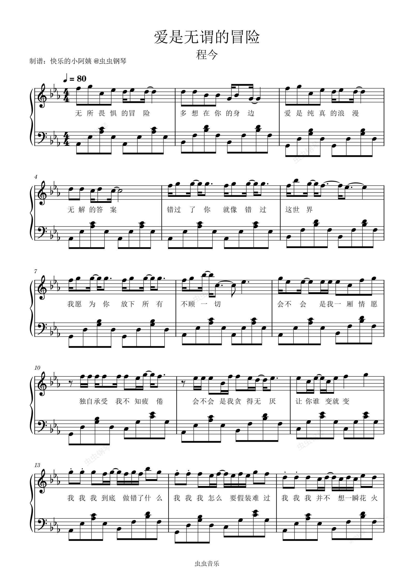 钢琴谱:爱是无畏的冒险-简易版带歌词-程今