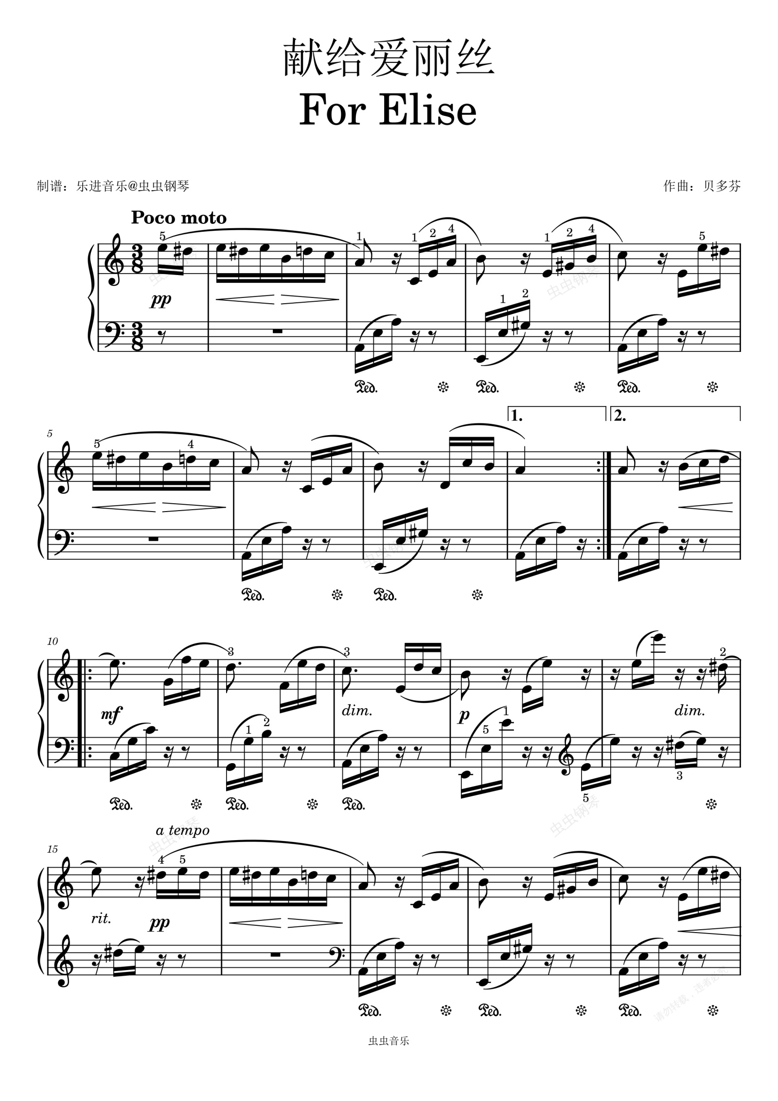 钢琴谱:《献给爱丽丝》原版