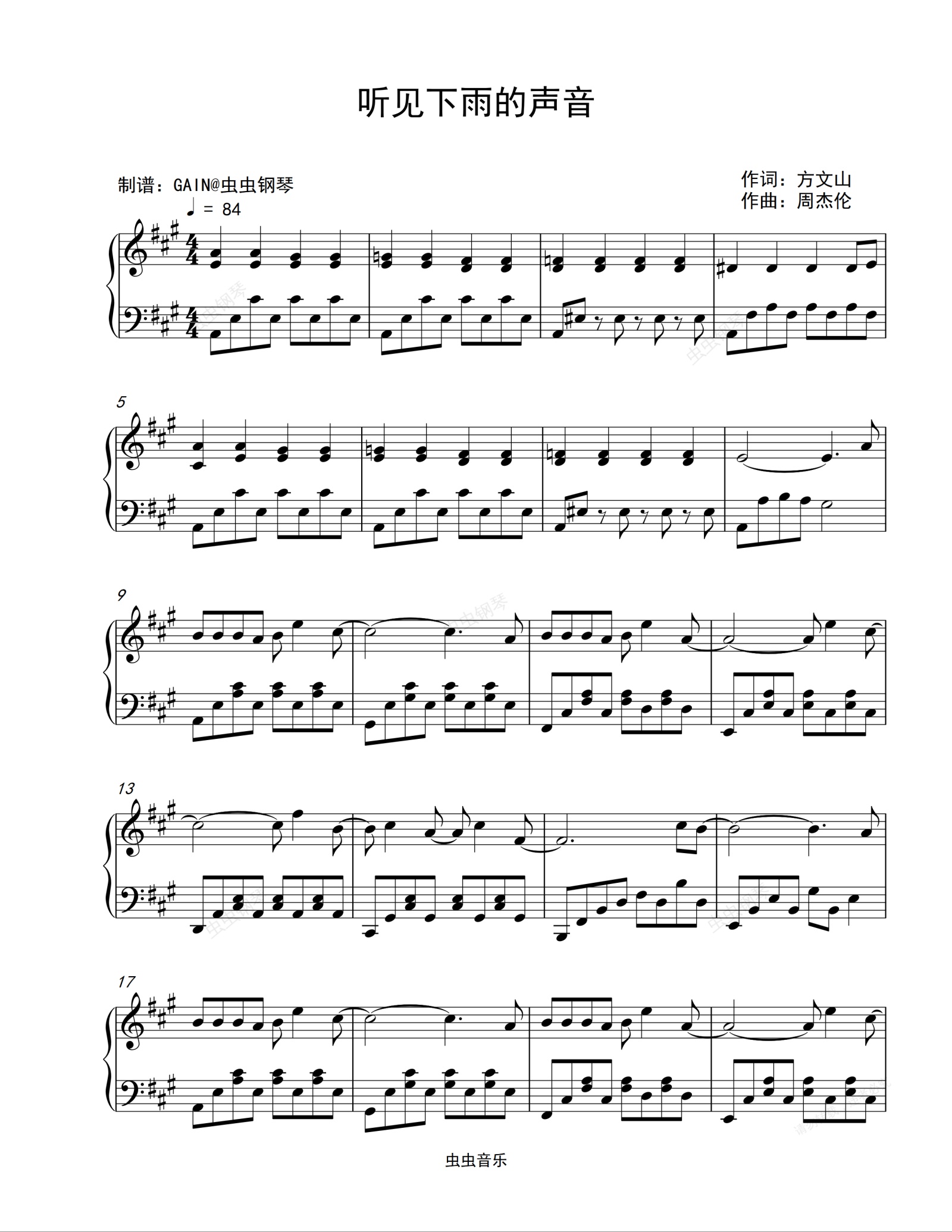 钢琴谱:听见下雨的声音-周杰伦-听见下雨的声音主题曲