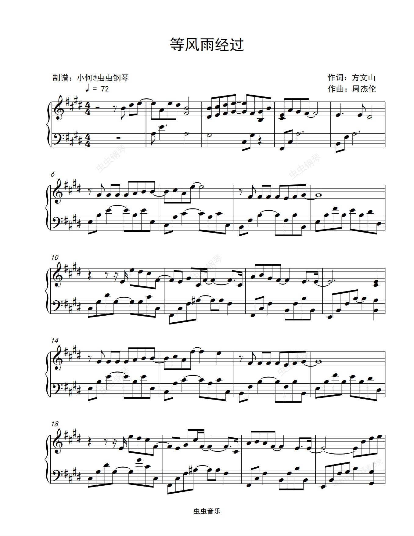 钢琴谱:等风雨经过-张学友周杰伦新歌刷屏网络听到第一句歌词就想哭