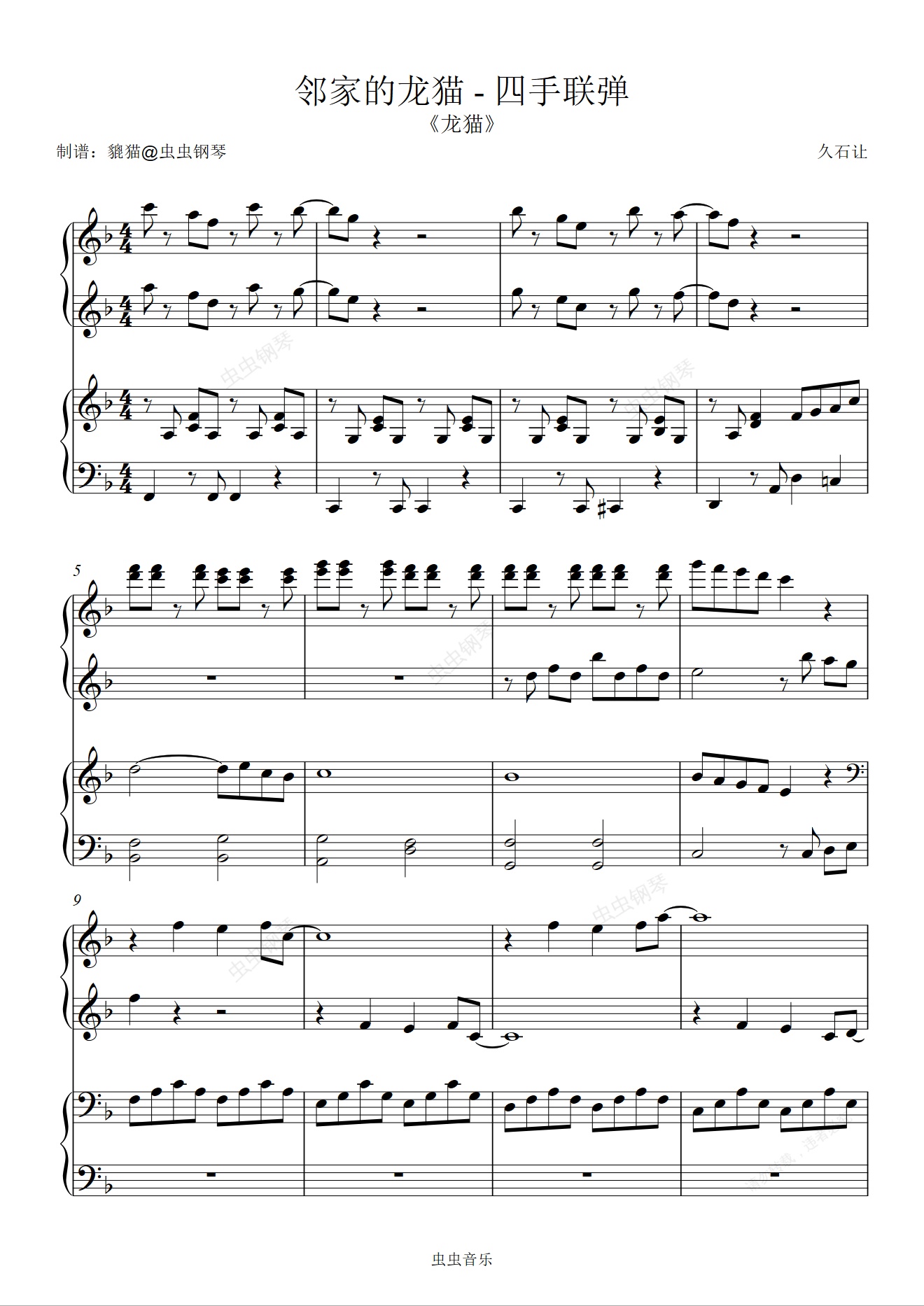 钢琴谱:邻家的龙猫(简易) | 四手联弹