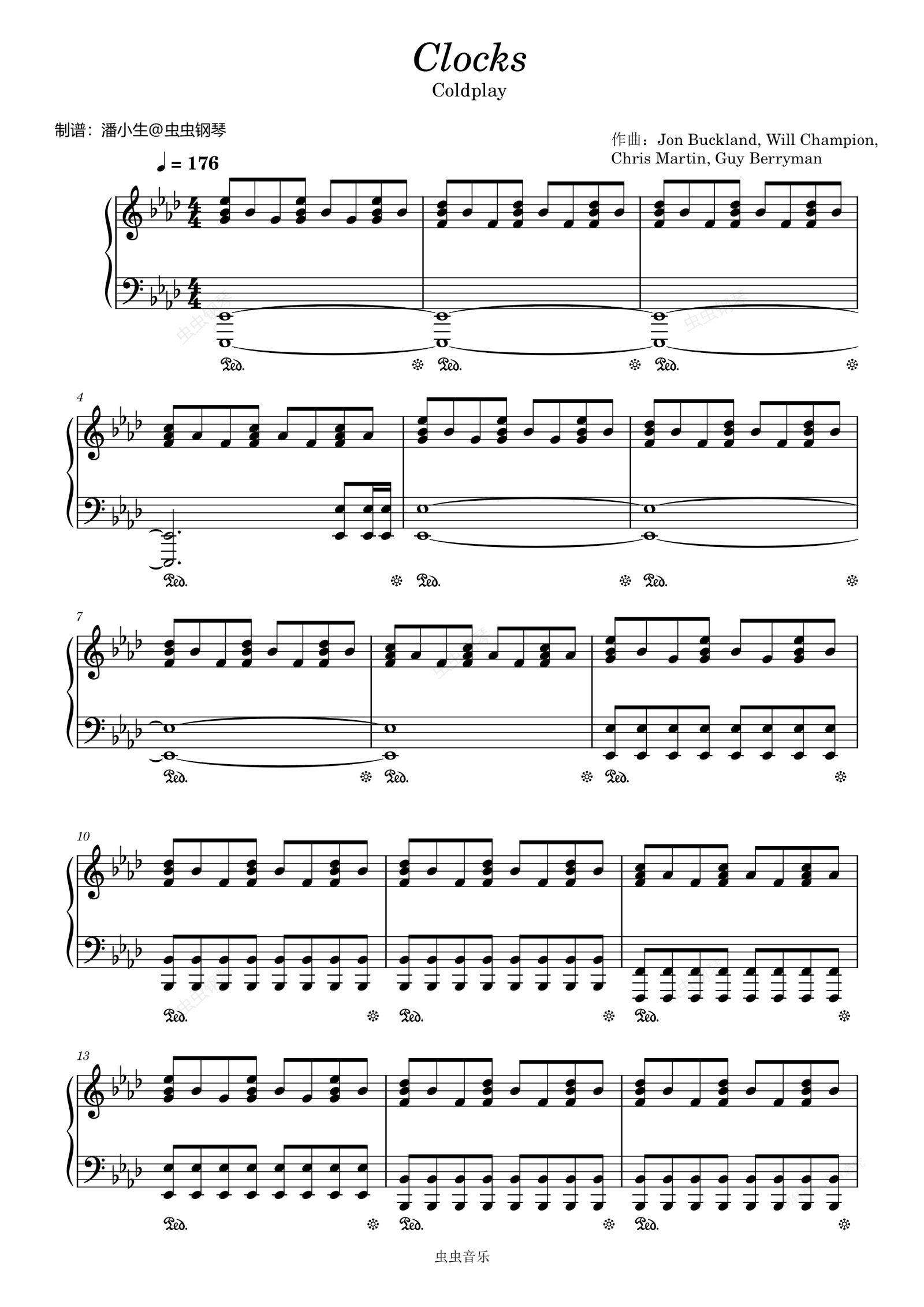 钢琴谱:Clocks,原调独奏版,Coldplay