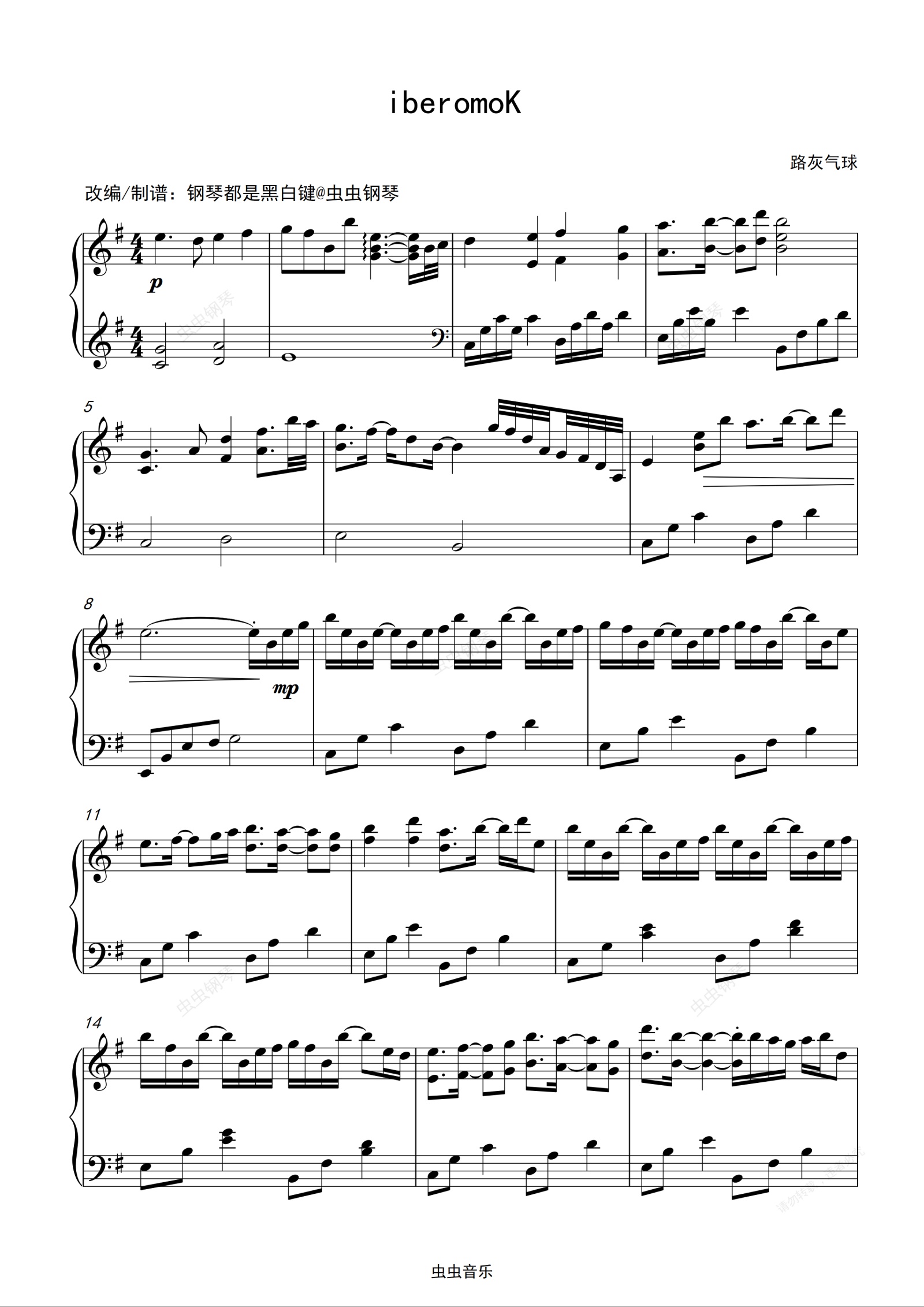 钢琴谱:iberomoK - 《komorebi》倒放歌曲 [改编演奏版]