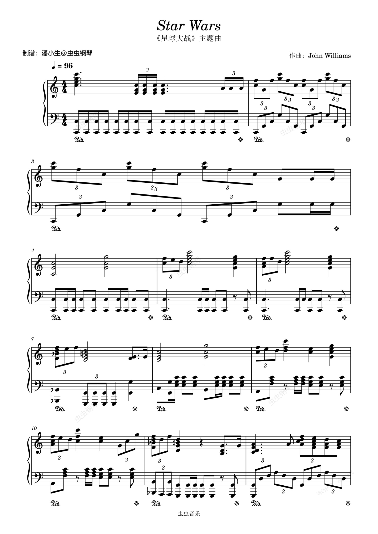 钢琴谱:Star Wars,星球大战主题曲,main theme,原调独奏谱,C大调