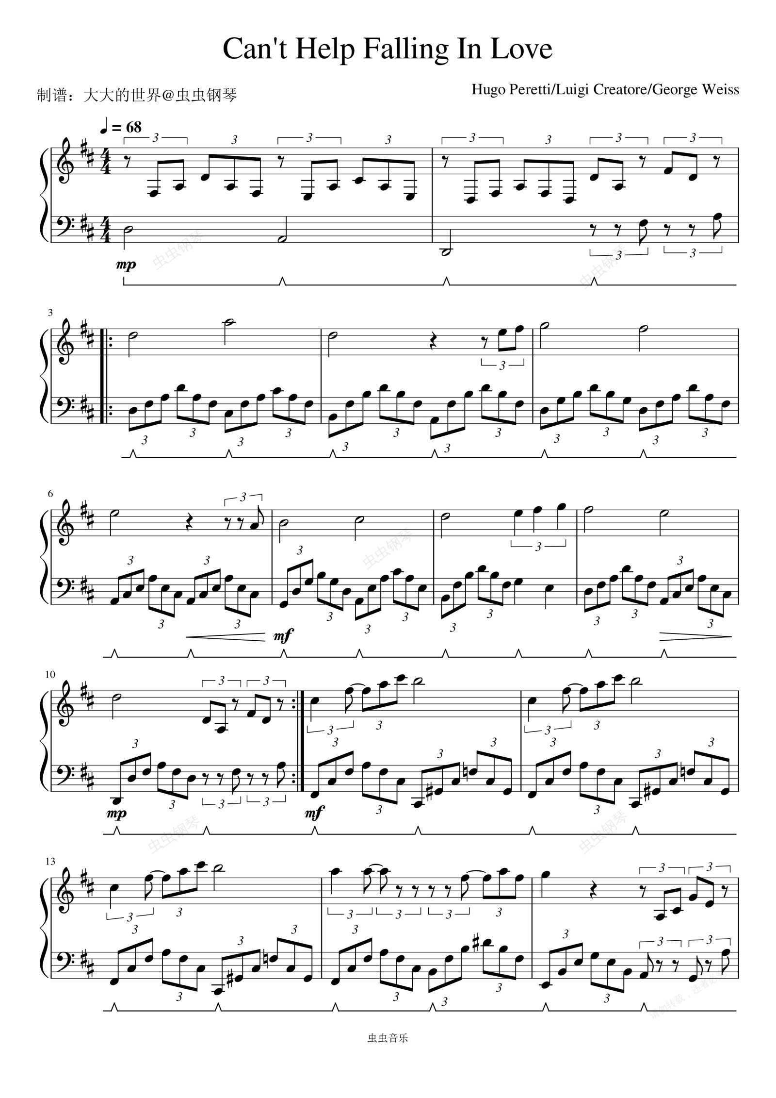 钢琴谱:Can't Help Falling In Love - Kina Grannis