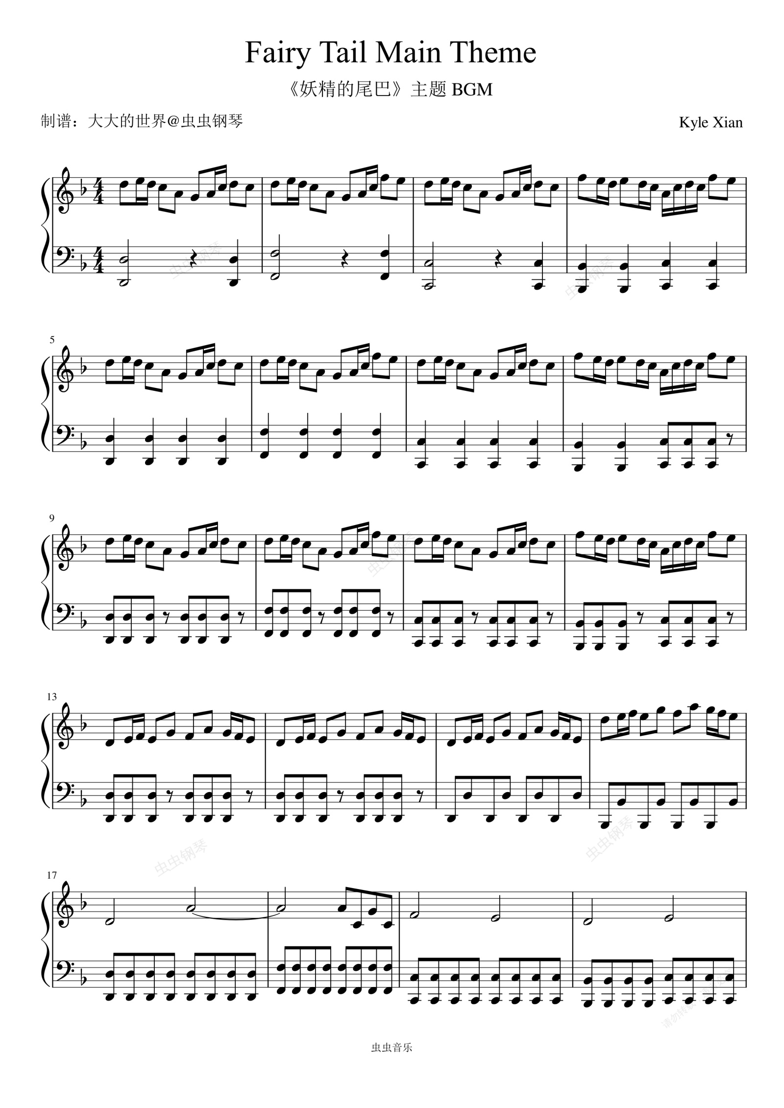钢琴谱:FAIRY TAIL Main Theme -《妖精的尾巴》主题 BGM