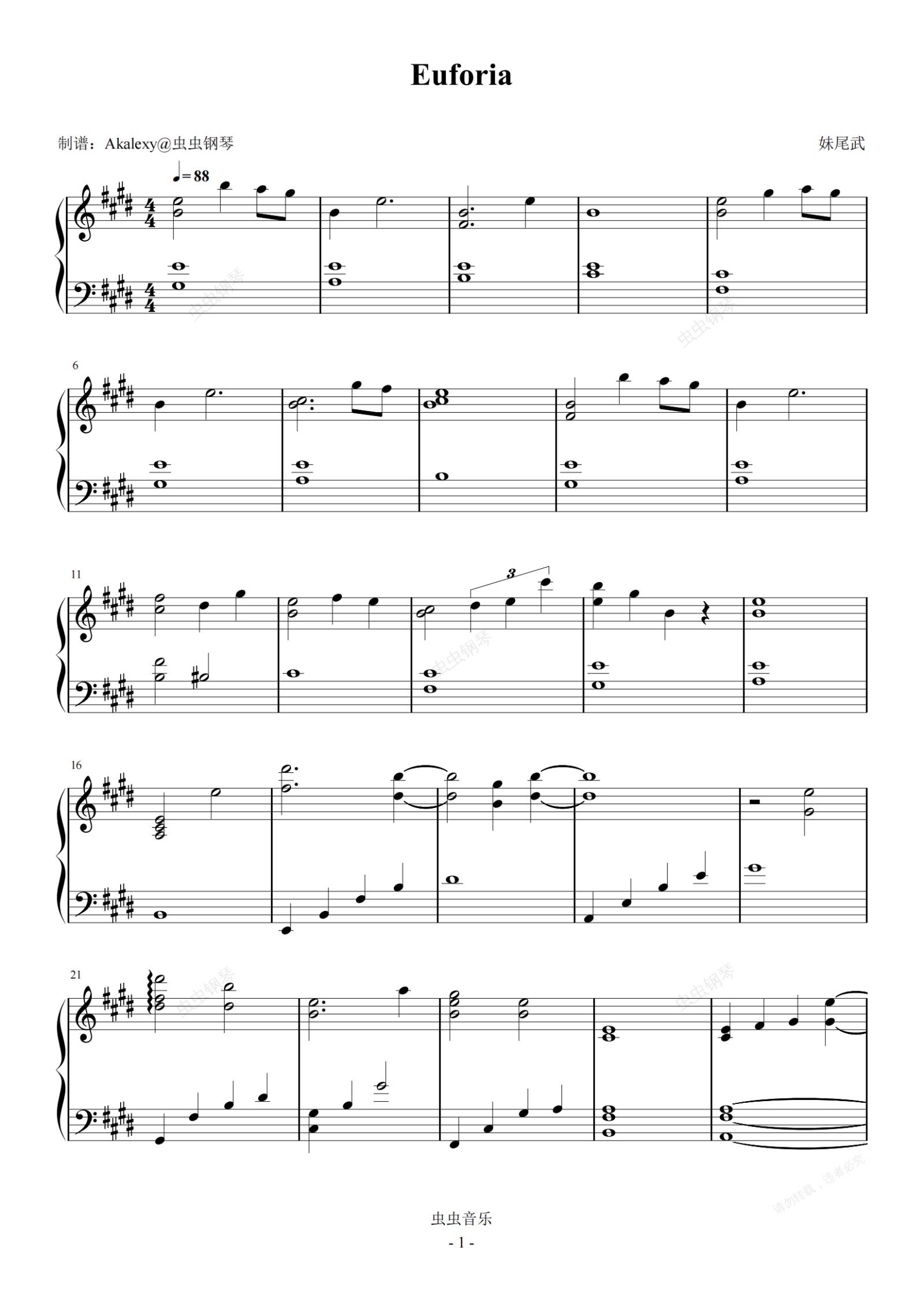 钢琴谱:【水星领航员】Euforia