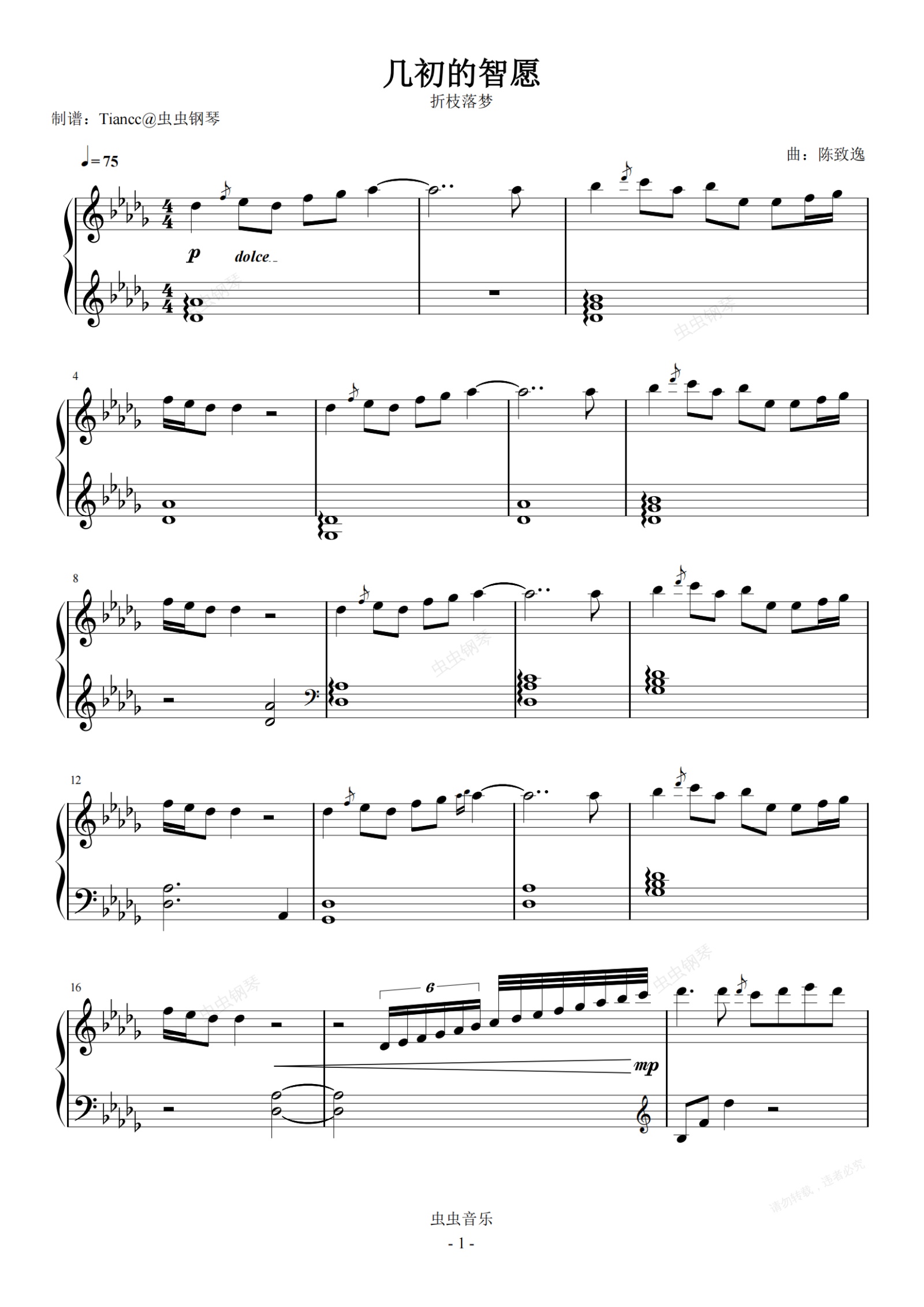 钢琴谱:《几初的智愿》原神,小草神动画,折枝落梦BGM