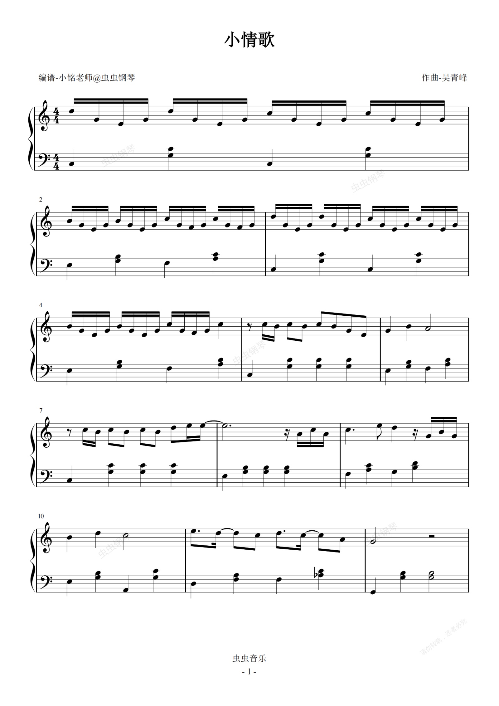 钢琴谱:小情歌 【简易版】