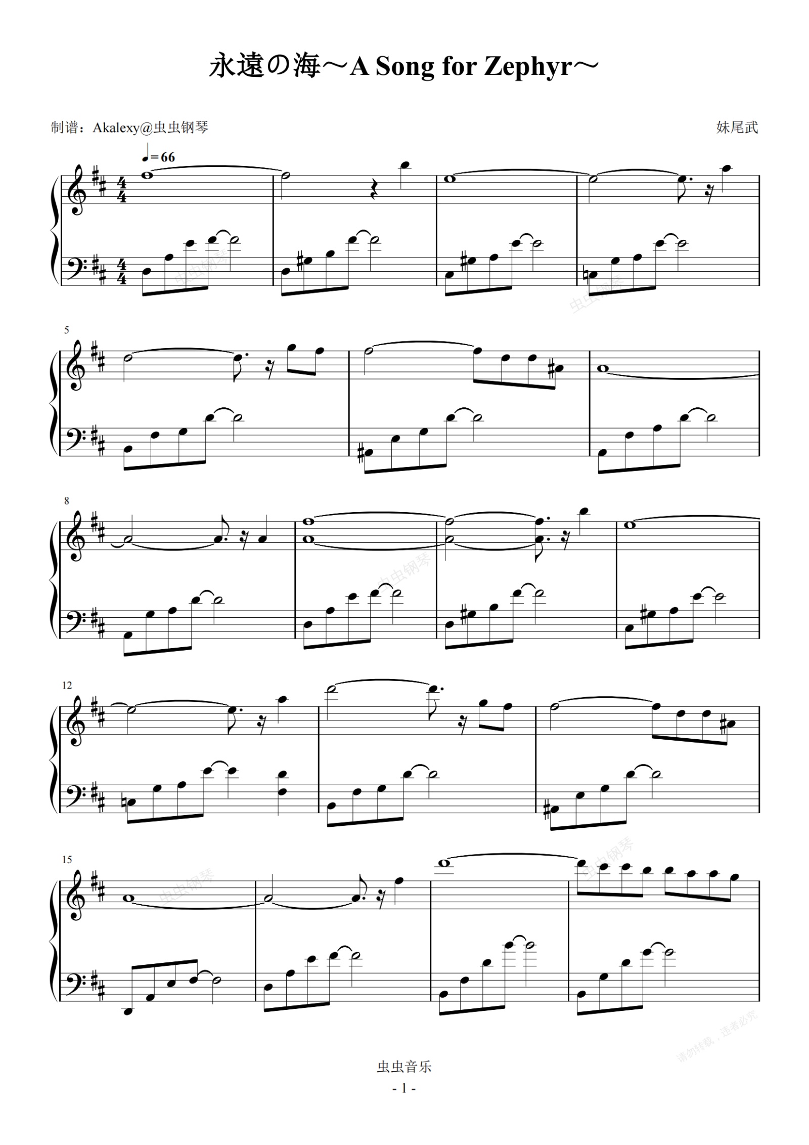 钢琴谱:【水星领航员】永遠の海~A Song for Zephyr~