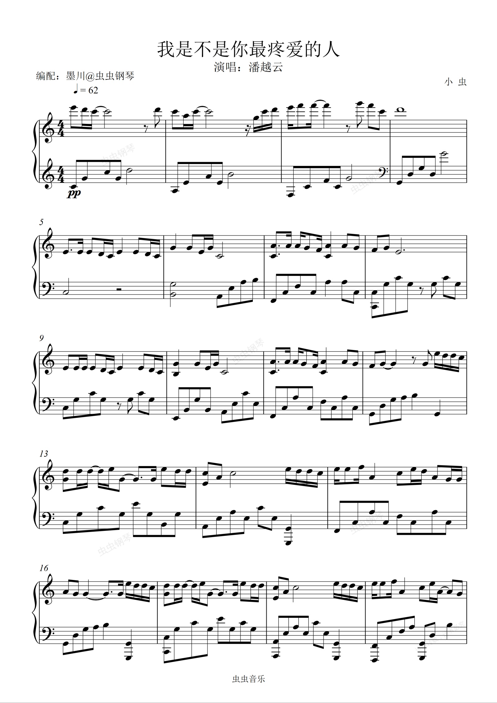 钢琴谱:我是不是你最疼爱的人—潘越云—C调编配
