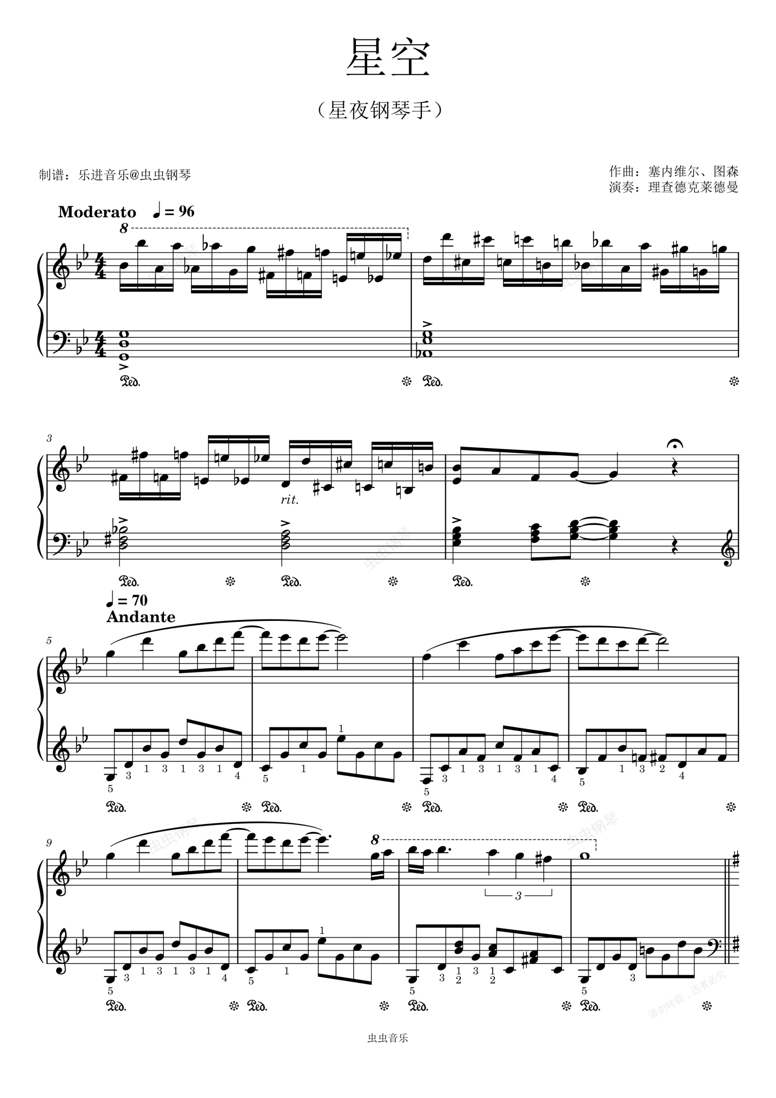 钢琴谱:《星空》(星夜钢琴手)优化版849程度可弹