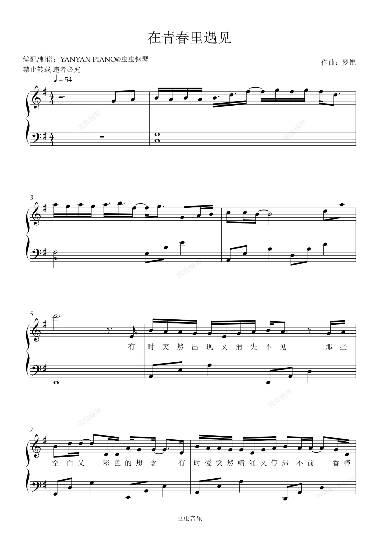 钢琴谱:好听易弹【在青春里遇见】卜冠今(忽而今夏)