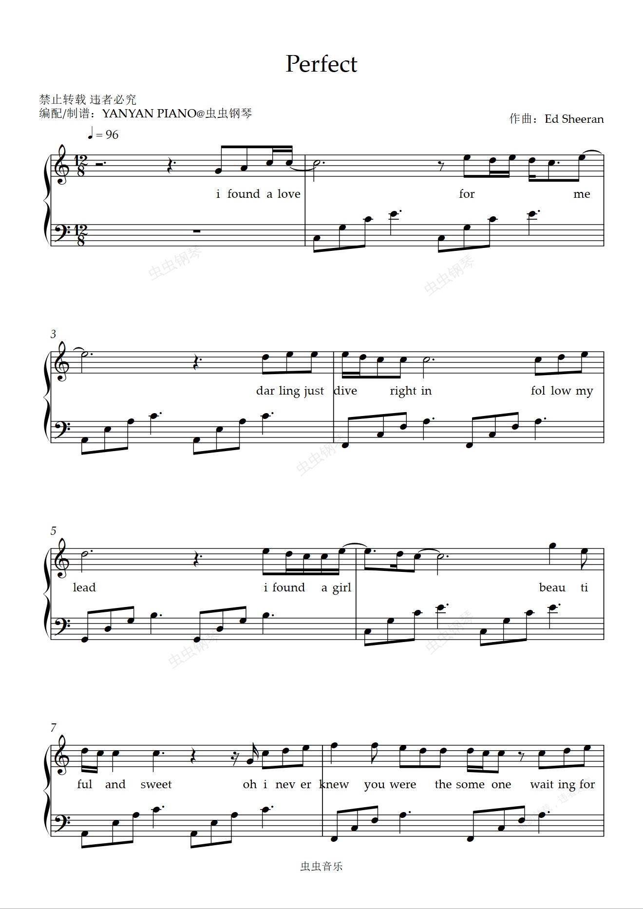 钢琴谱:好听易弹【Perfect】Ed Sheeran