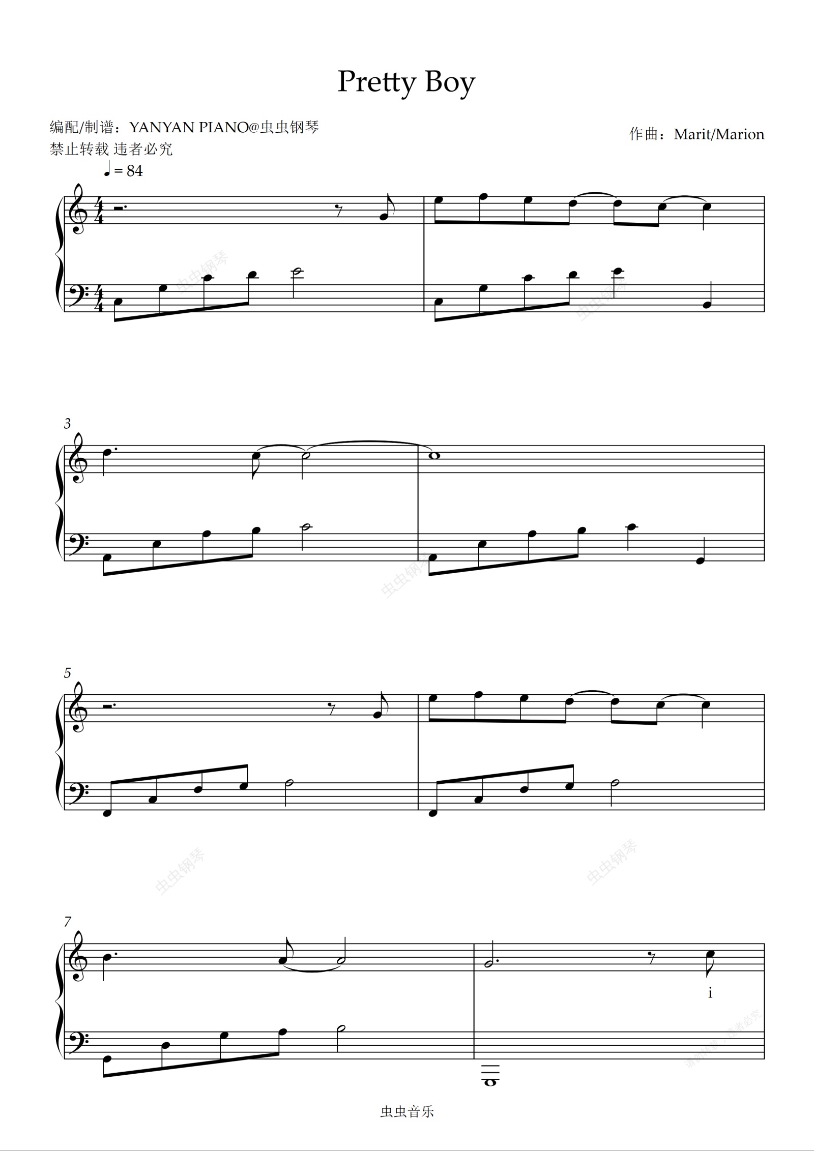钢琴谱:好听易弹【Pretty Boy】M2M